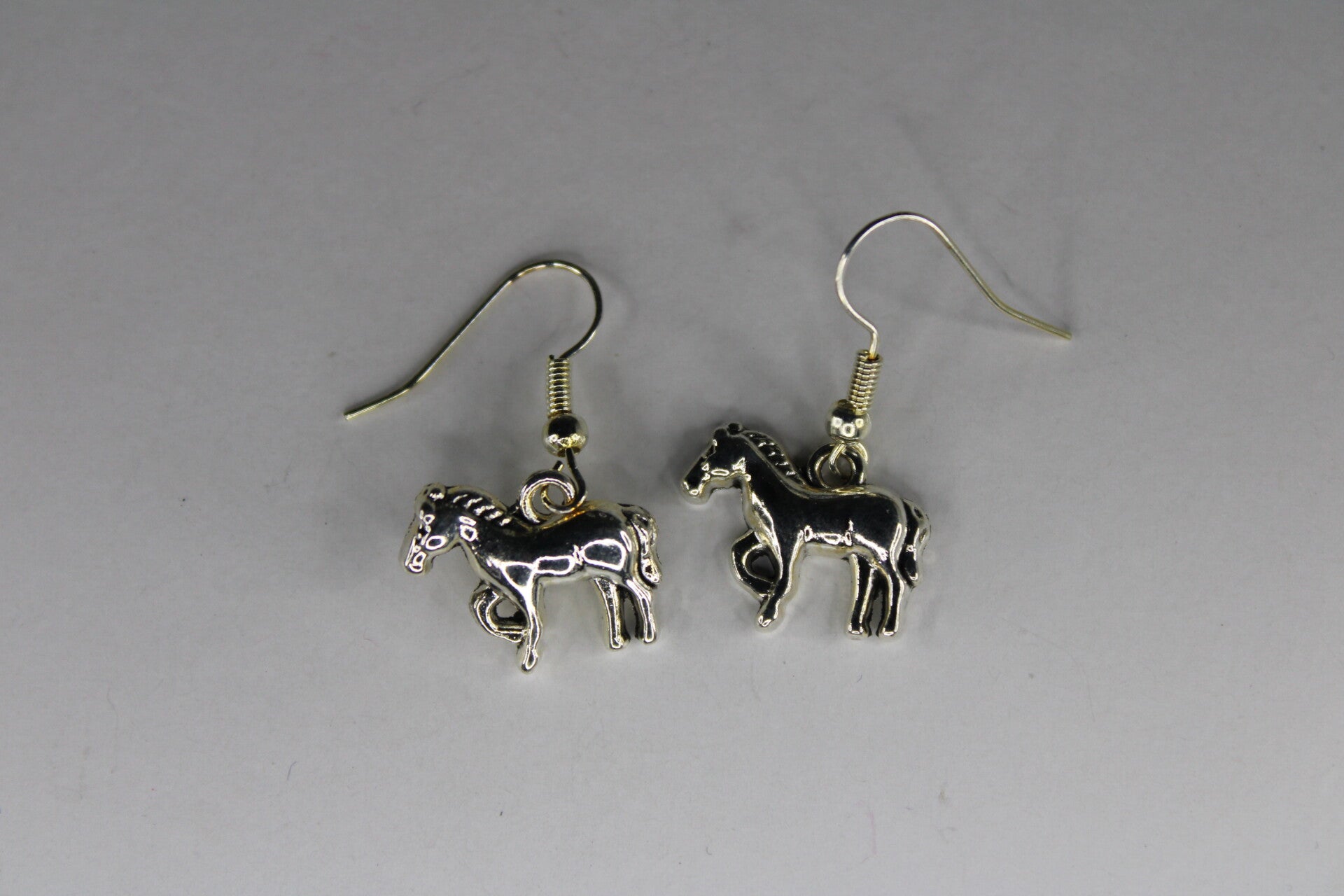 Zilverkleurige oorbellen in de vorm van dravende paarden