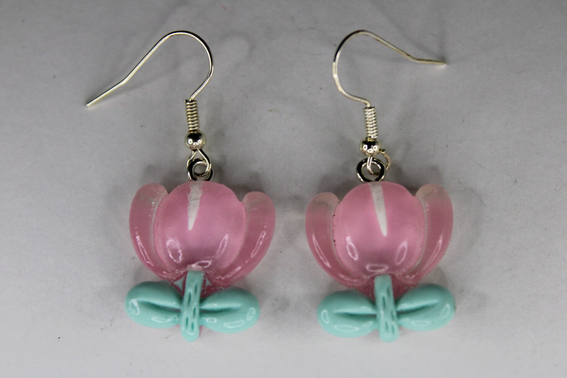 Leuke oorbellen met als hanger diverse bloemen in pastel kleuren