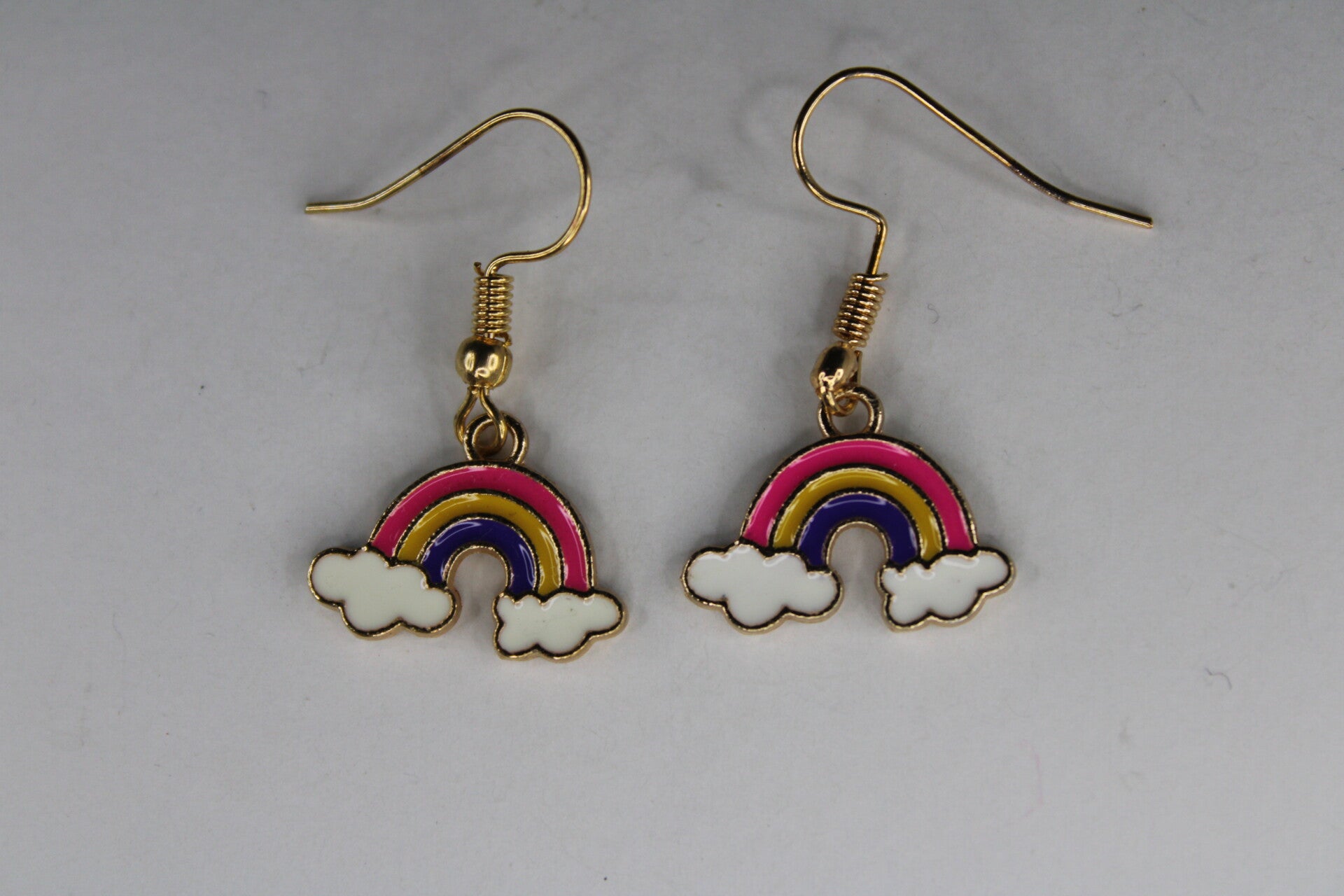 Drie-Kleurige Regenboog Met Wolkjes - Oorbellen