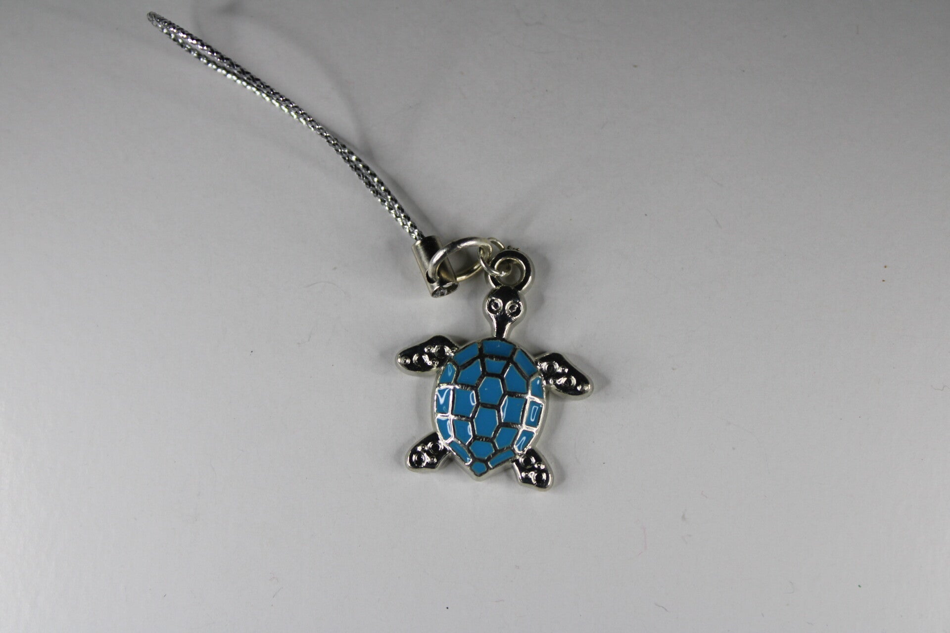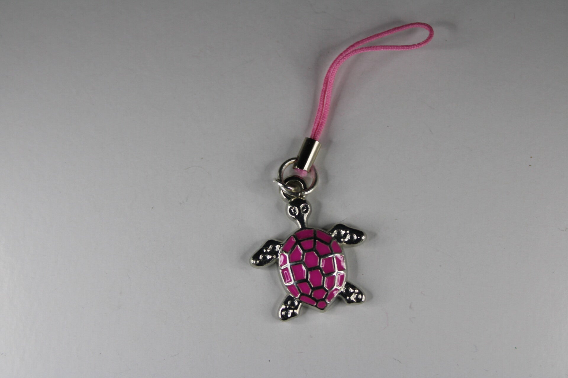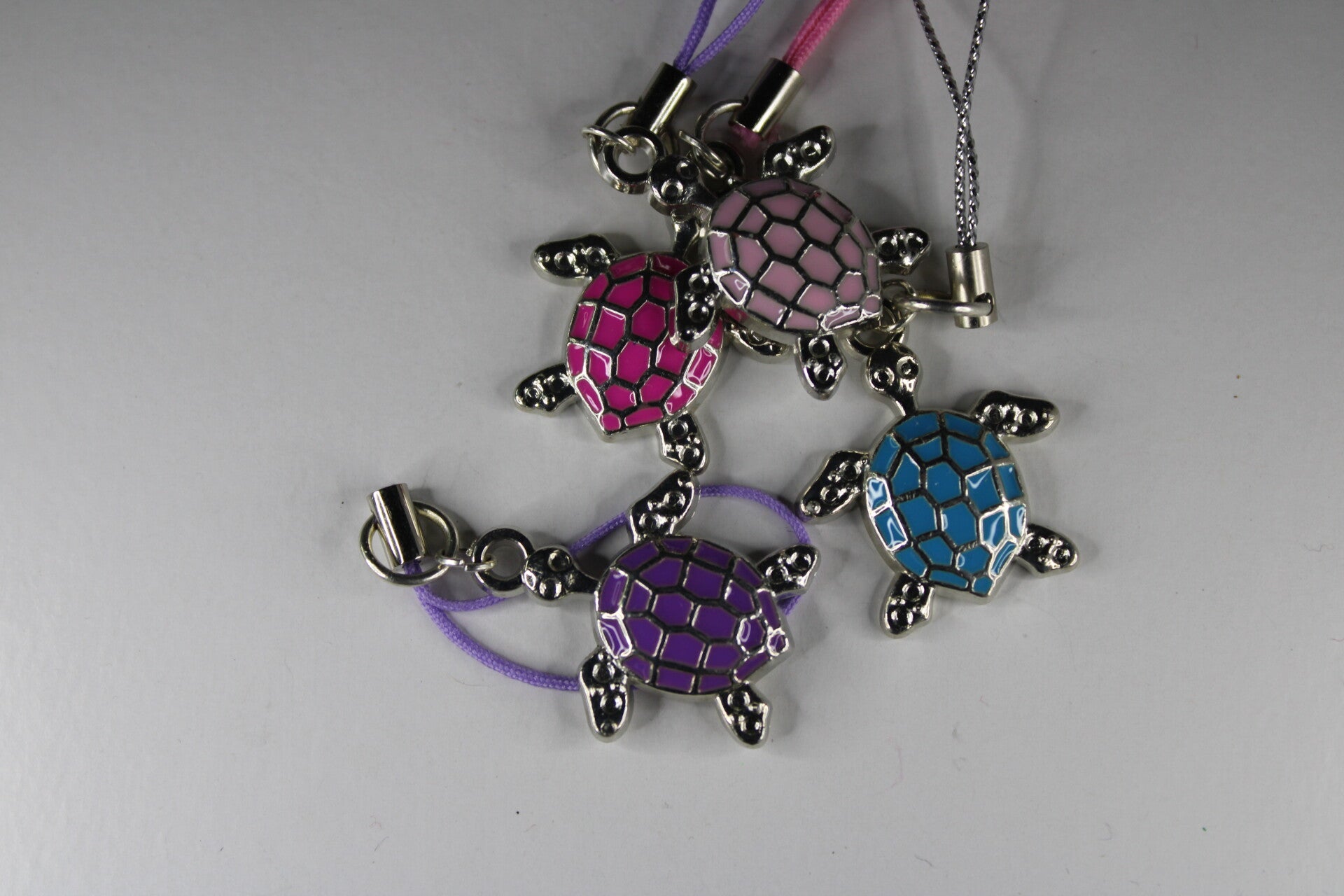 Leuke zilverkleurige telefoonhangers met een gekleurde schildpad