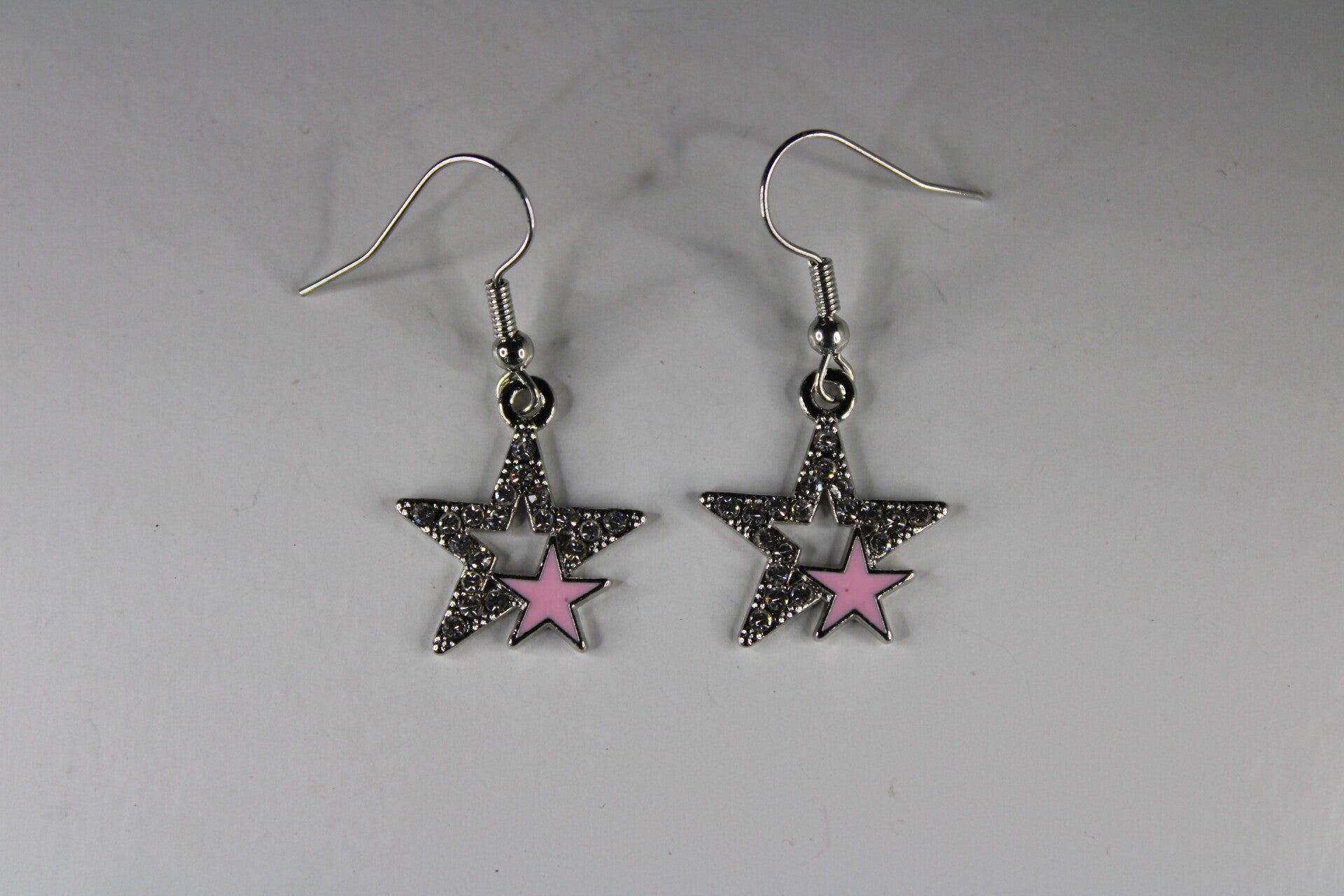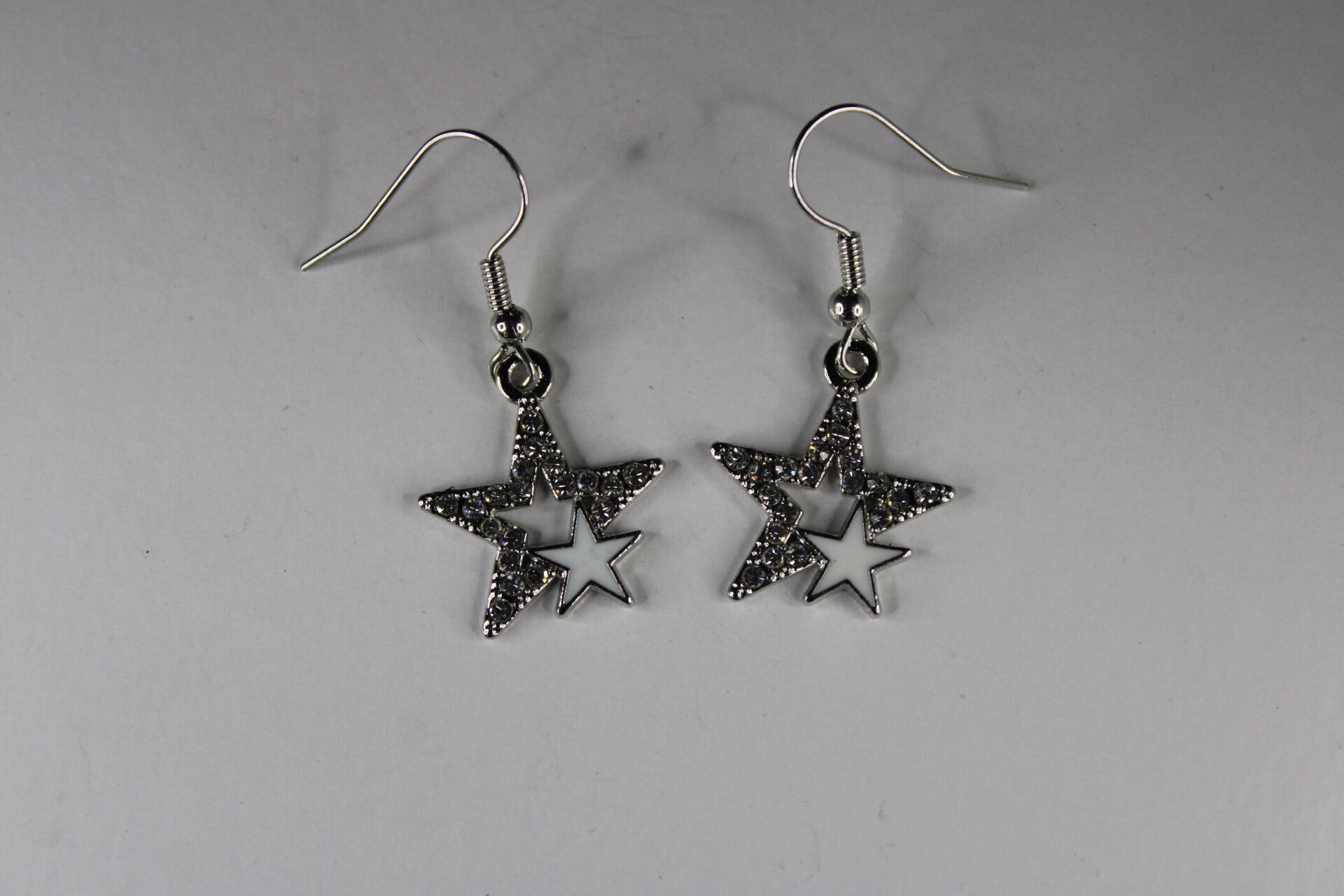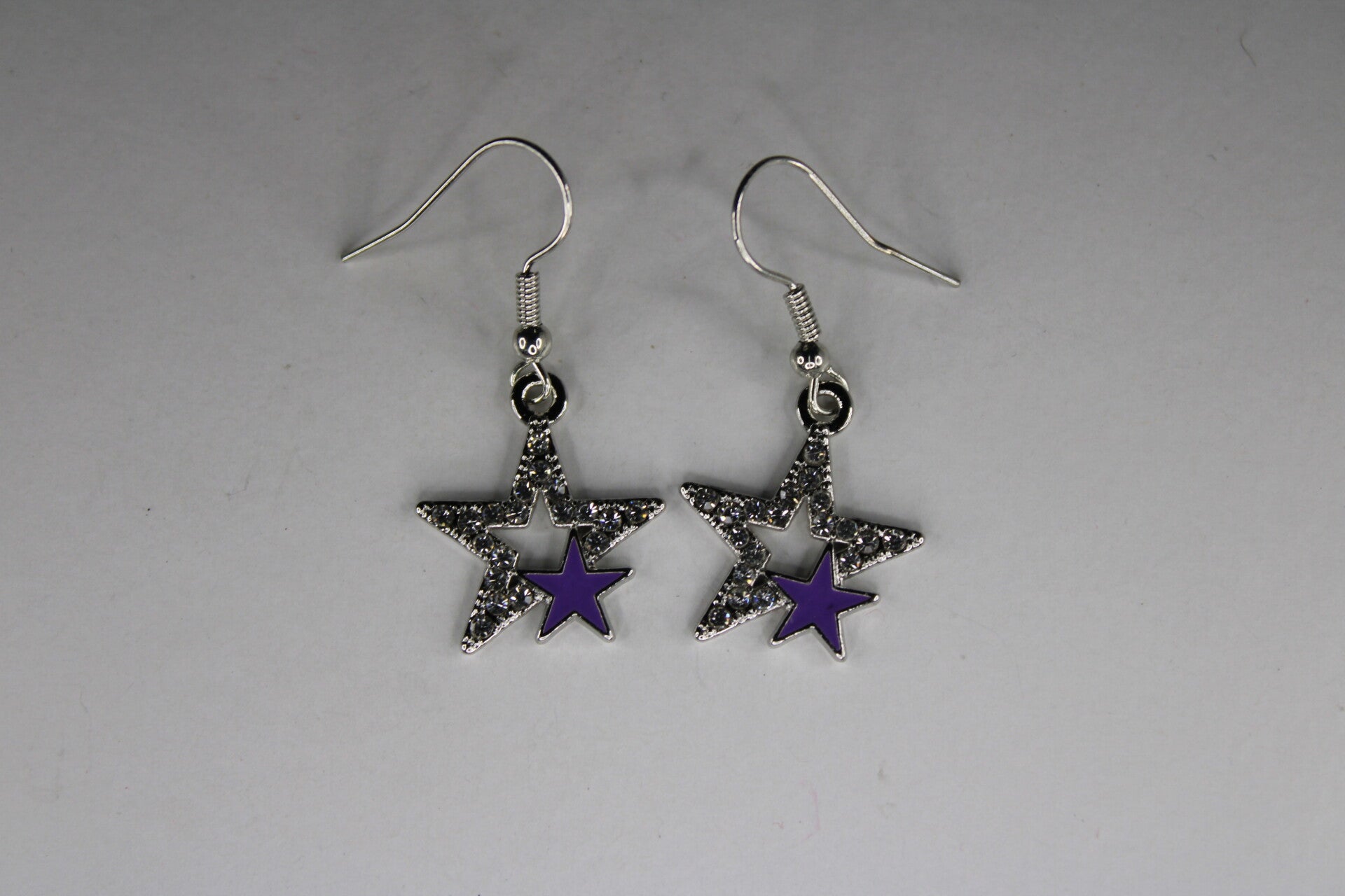 Mooie oorbellen met een zilverkleurige ster met een opvallende gekleurde ster binnenin een grotere