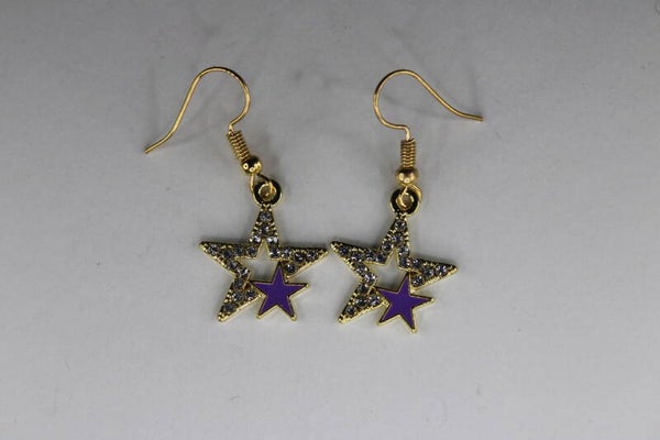Oorbellen / Ster/Maan/Heelal / Goud/Paars