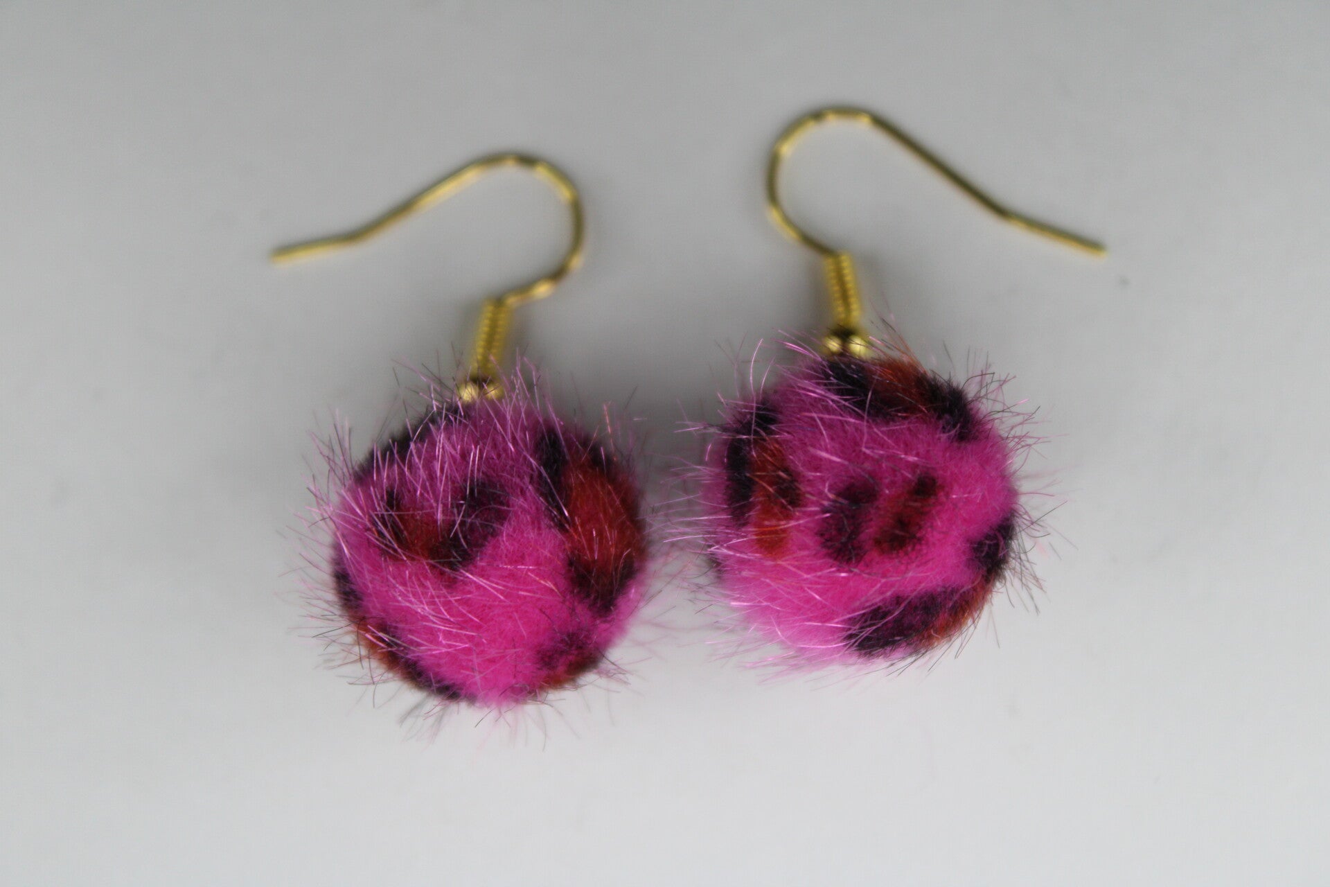 Leuke oorbellen met als hanger pompoms met panterprint