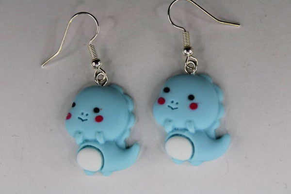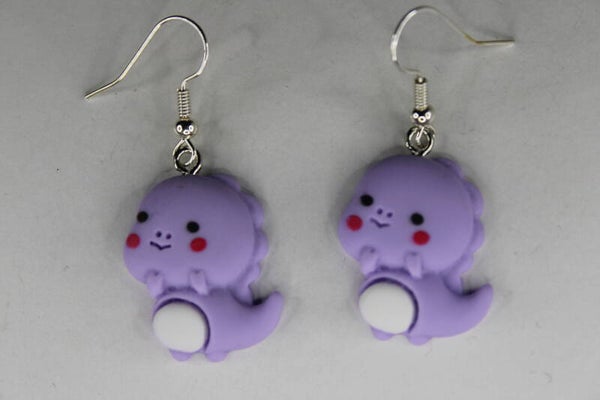 Vrolijke oorbellen met als hanger een dino in verschillende kleuren verkrijgbaar