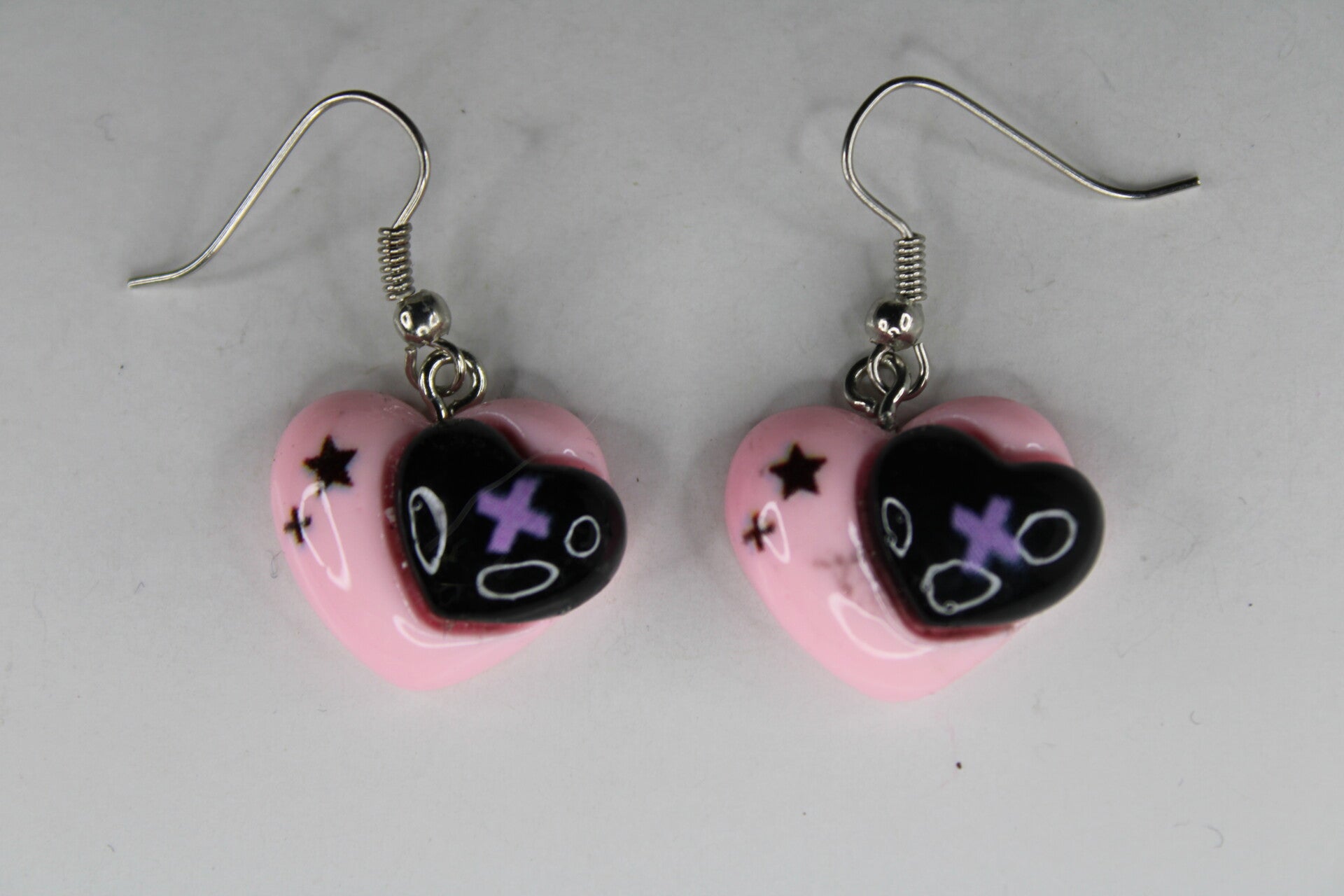 Oorbellen / Voorwerp / Zwart/Roze / Hartje
