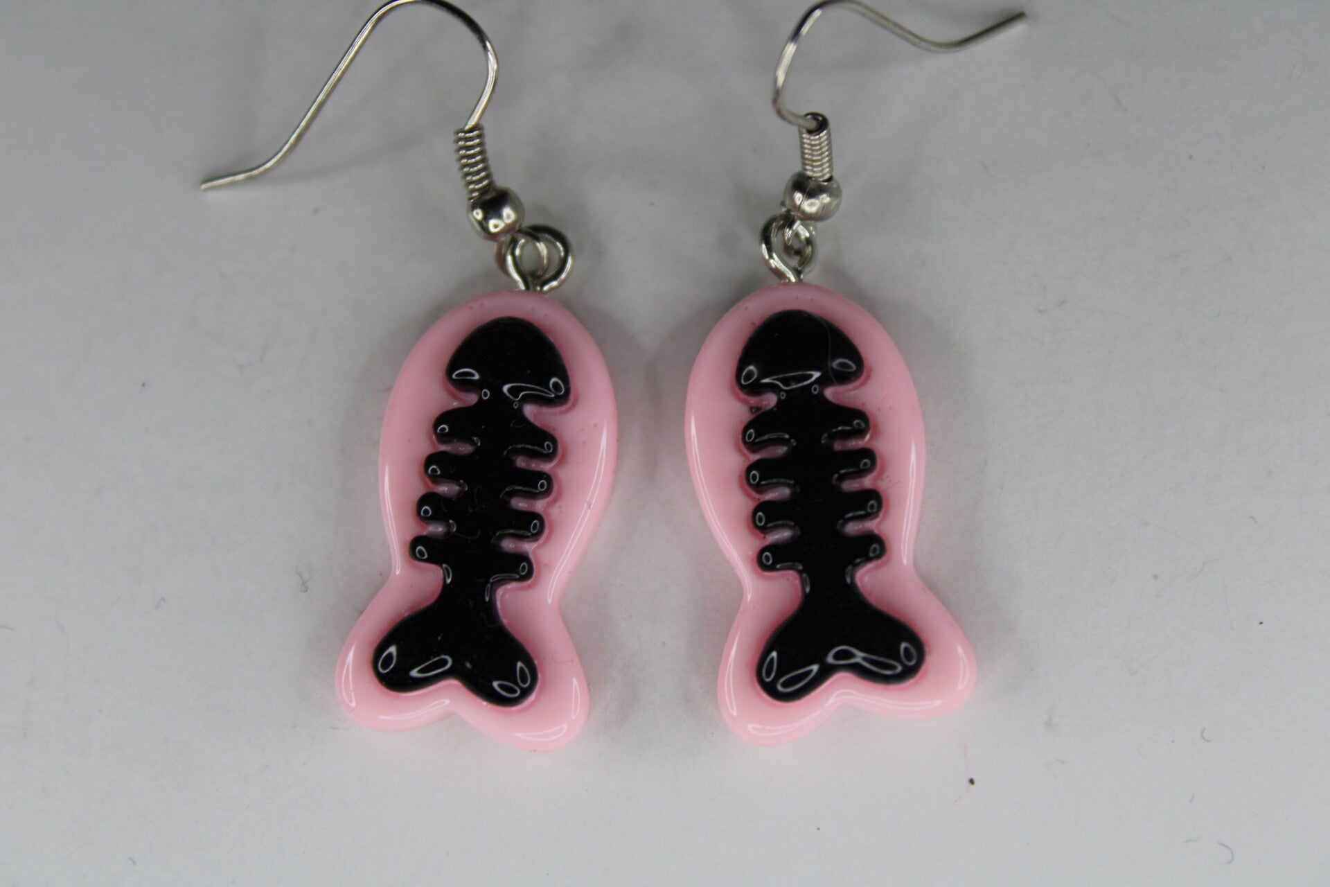 Oorbellen / Voorwerp / Zwart/Roze / Vissengraat