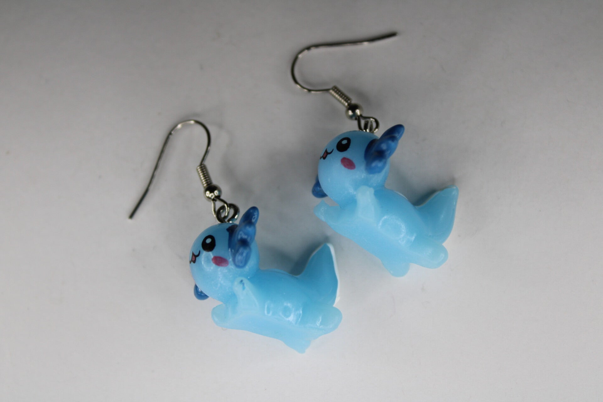 Schattige oorbellen met als hanger een axolotl, een mexicaanse salamander