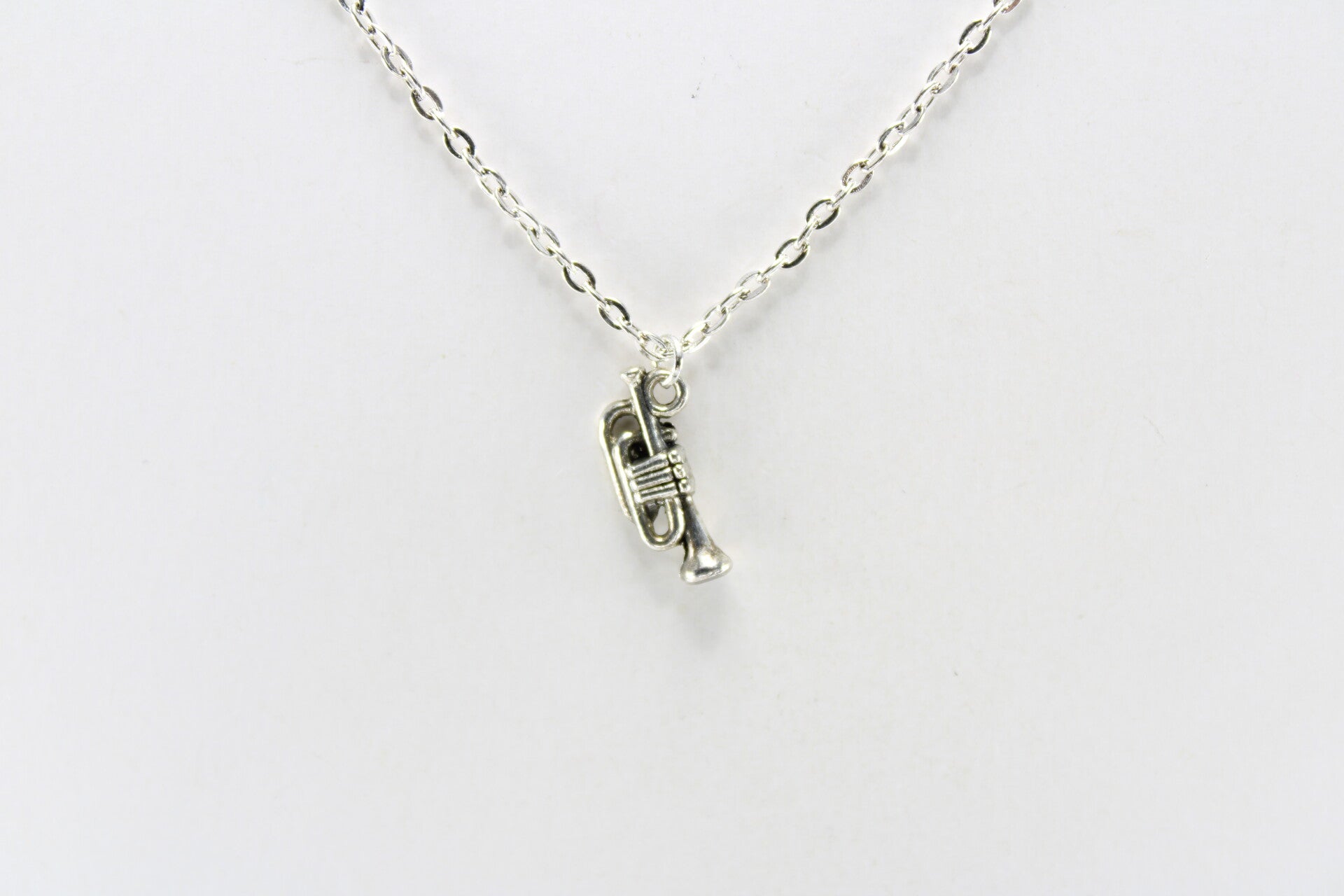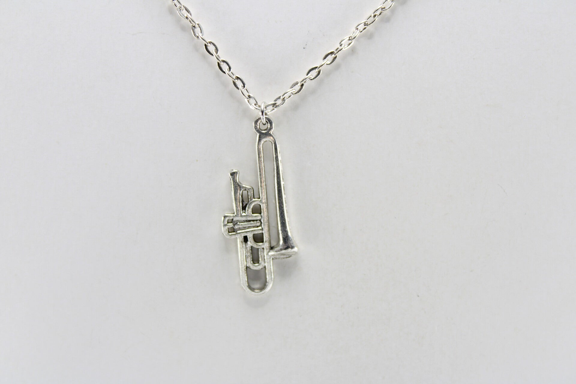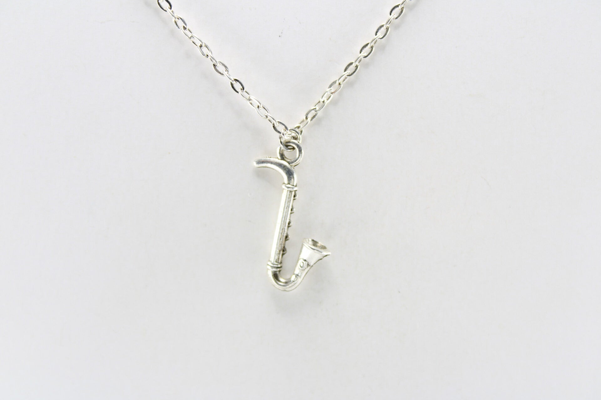 Zilverkleurige schakelketting met sluitins en een mooie bedel muziekgerelateerd item