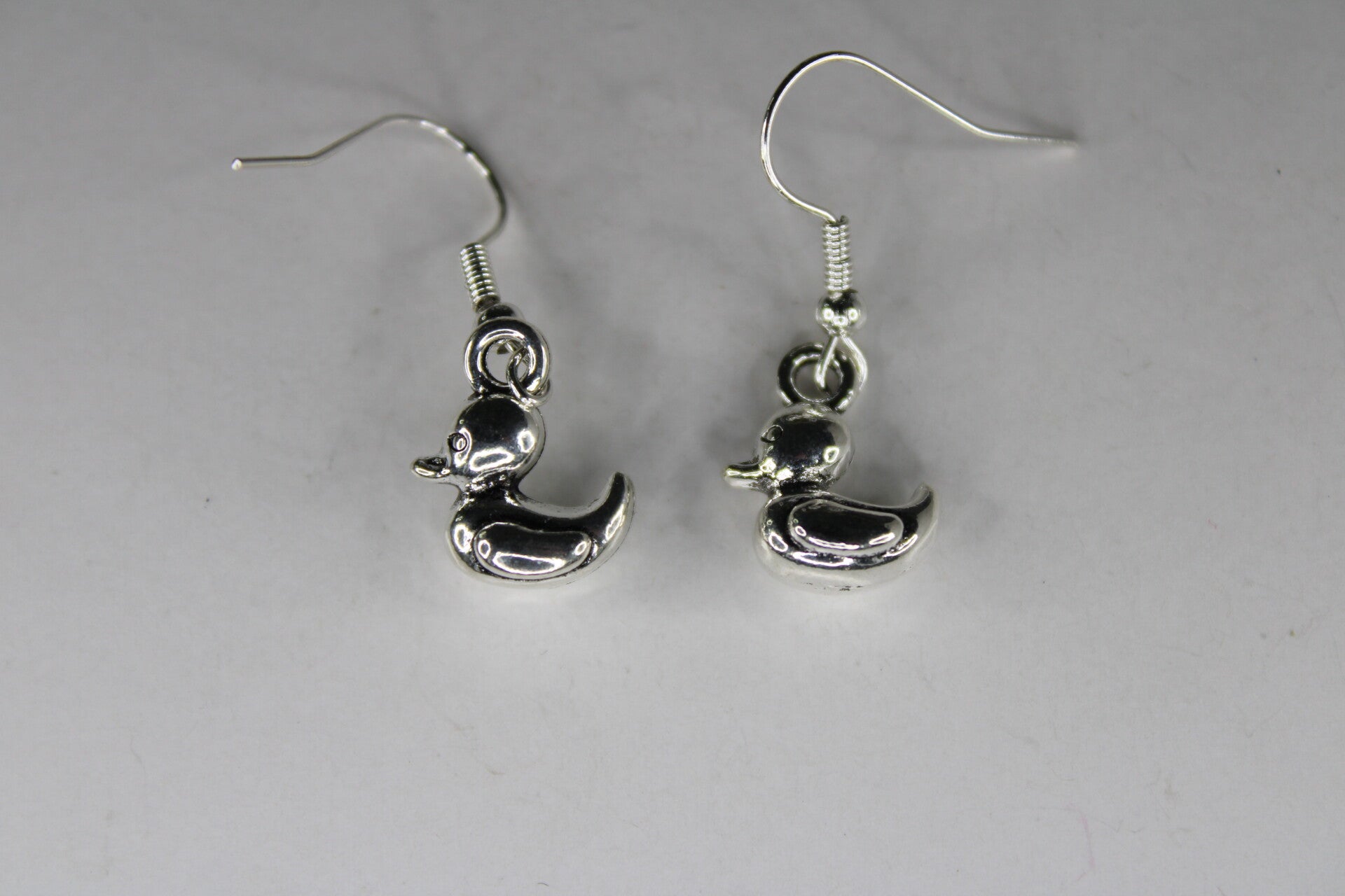 Mooie oorbellen met als hanger kleine zilverkleurigen badeendjes