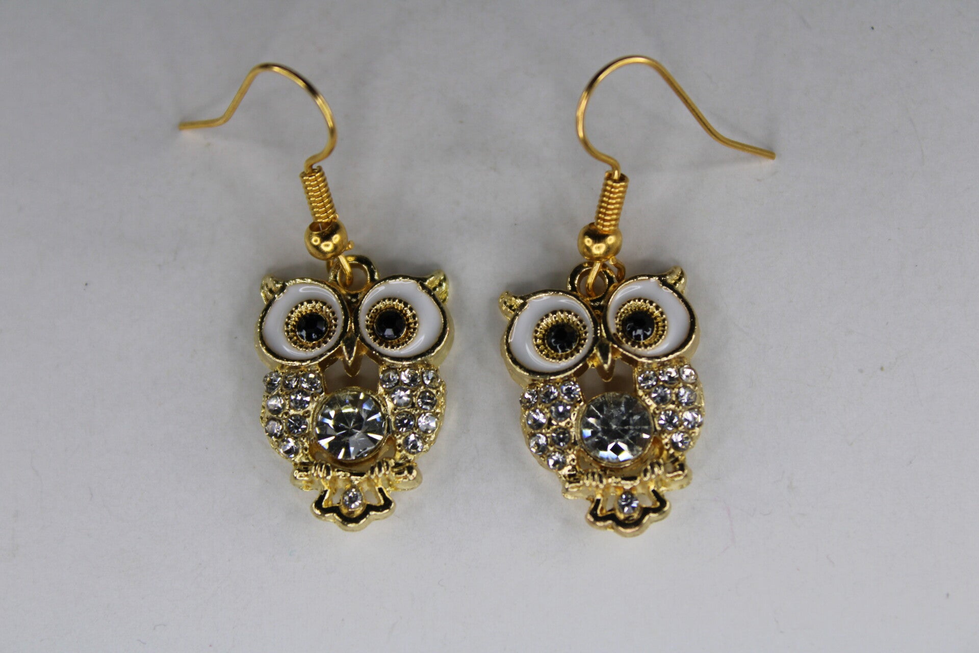 Mooie oorbellen met als hanger een goudkleurige uil met diamantjes