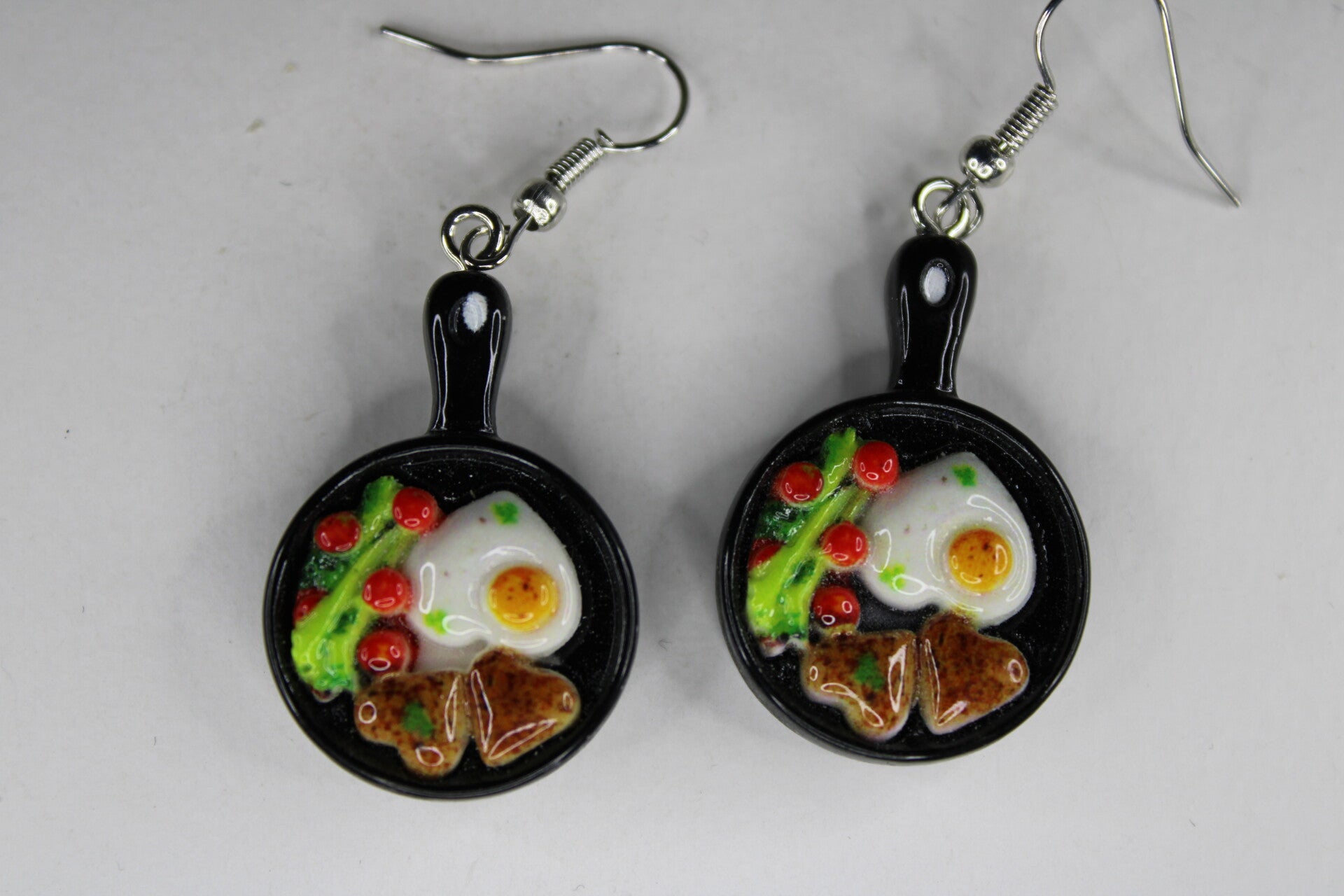 Heerlijke oorbellen met als hanger een koekenpan met maaltijd