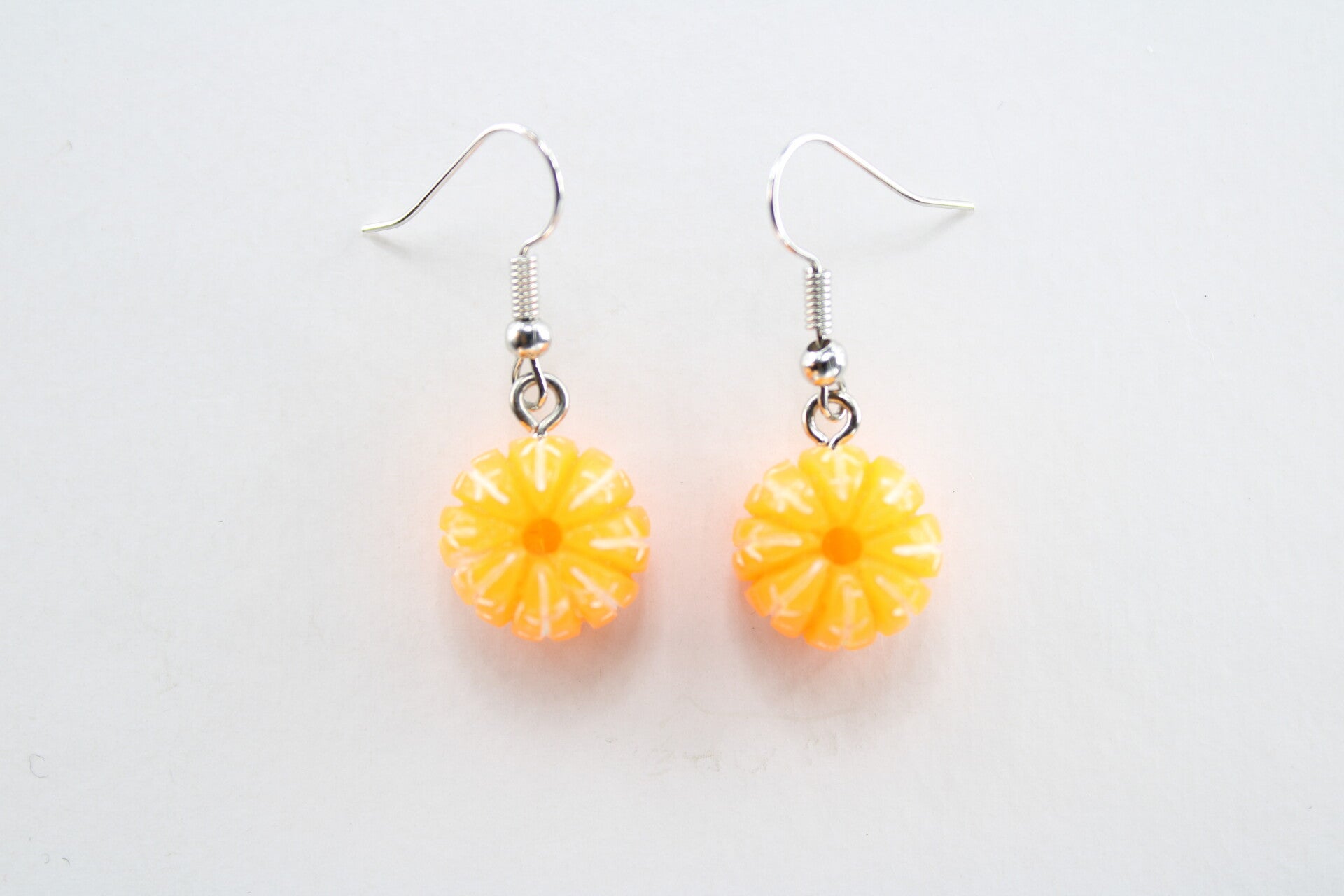 Heerlijke oorbellen met als hanger een geschilde mandarijn