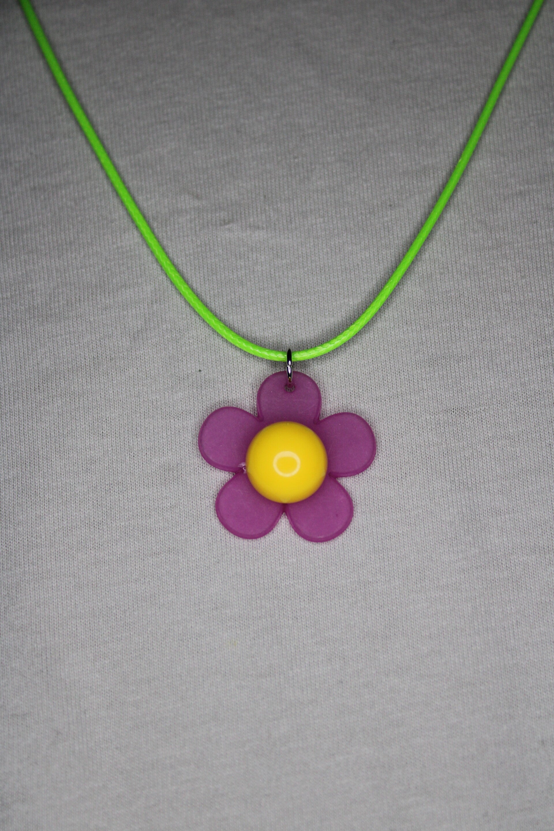 Leuke ketting met als hanger een grote bloem aan koord met sluiting
