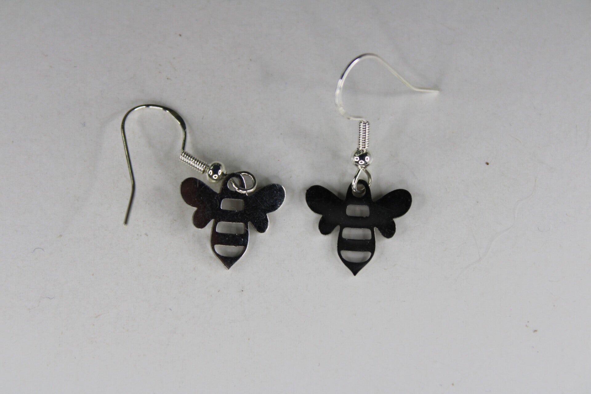Mooie oorbellen met als hanger een zilverkleurige bij