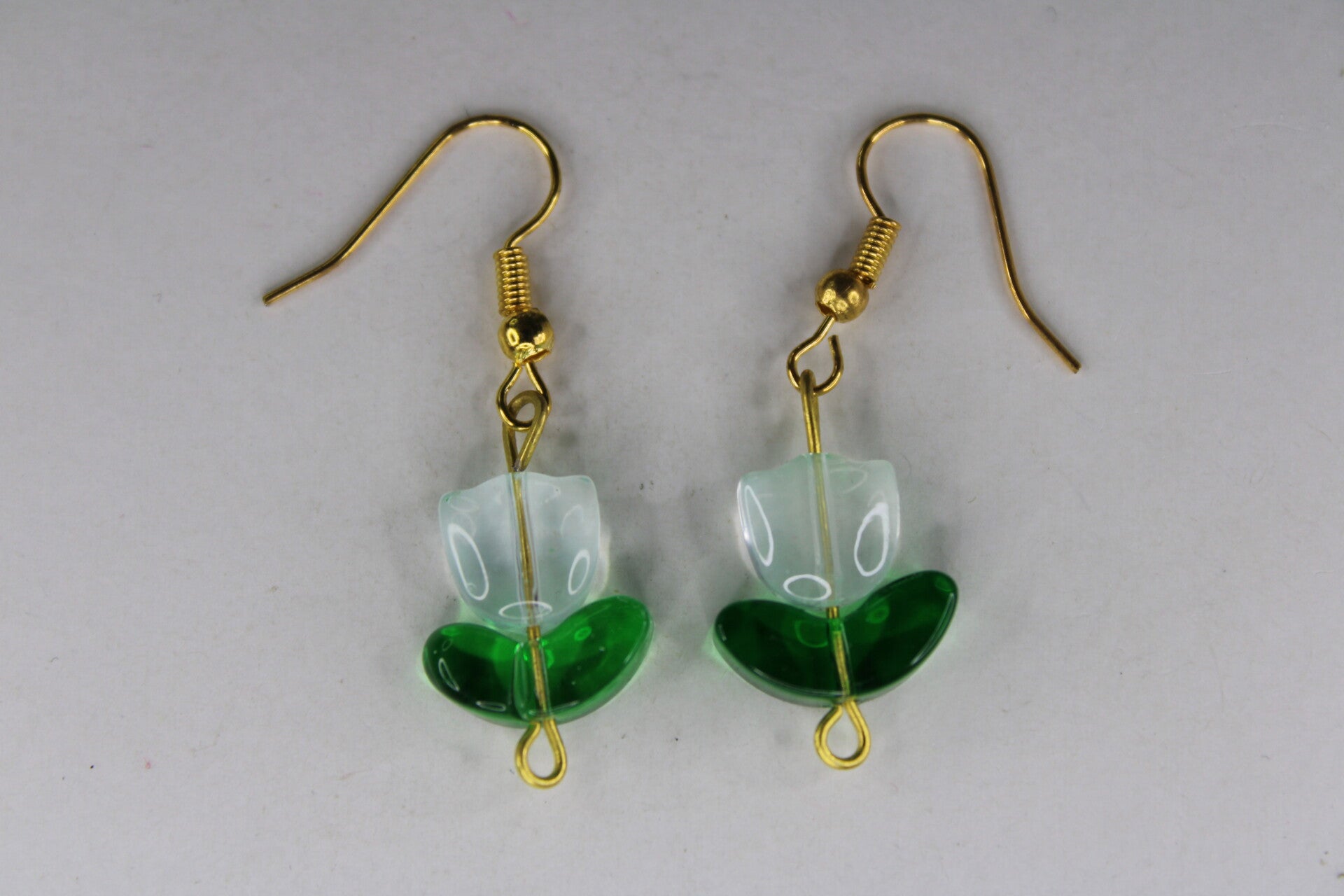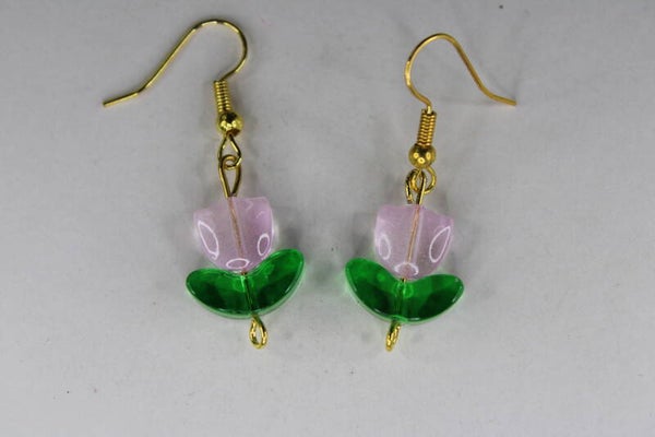 Mooie oorbellen met als hanger een doorzichtige tulp