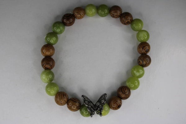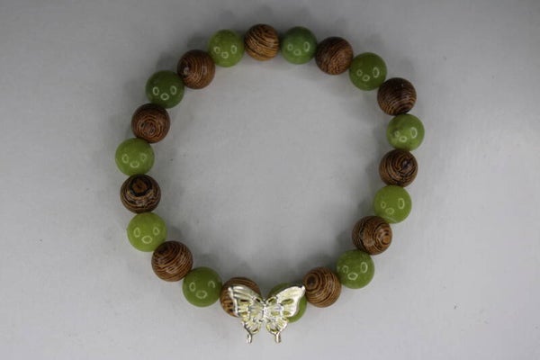 Natuurstenen En Houten Kralen Met Vlinder - Armband