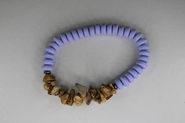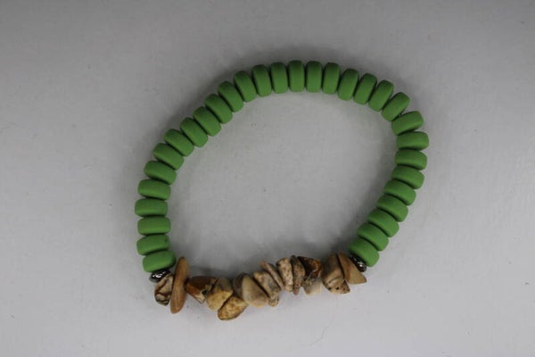 Gekleurde Klei Kralen Met Bruine Natuurstenen - Armband