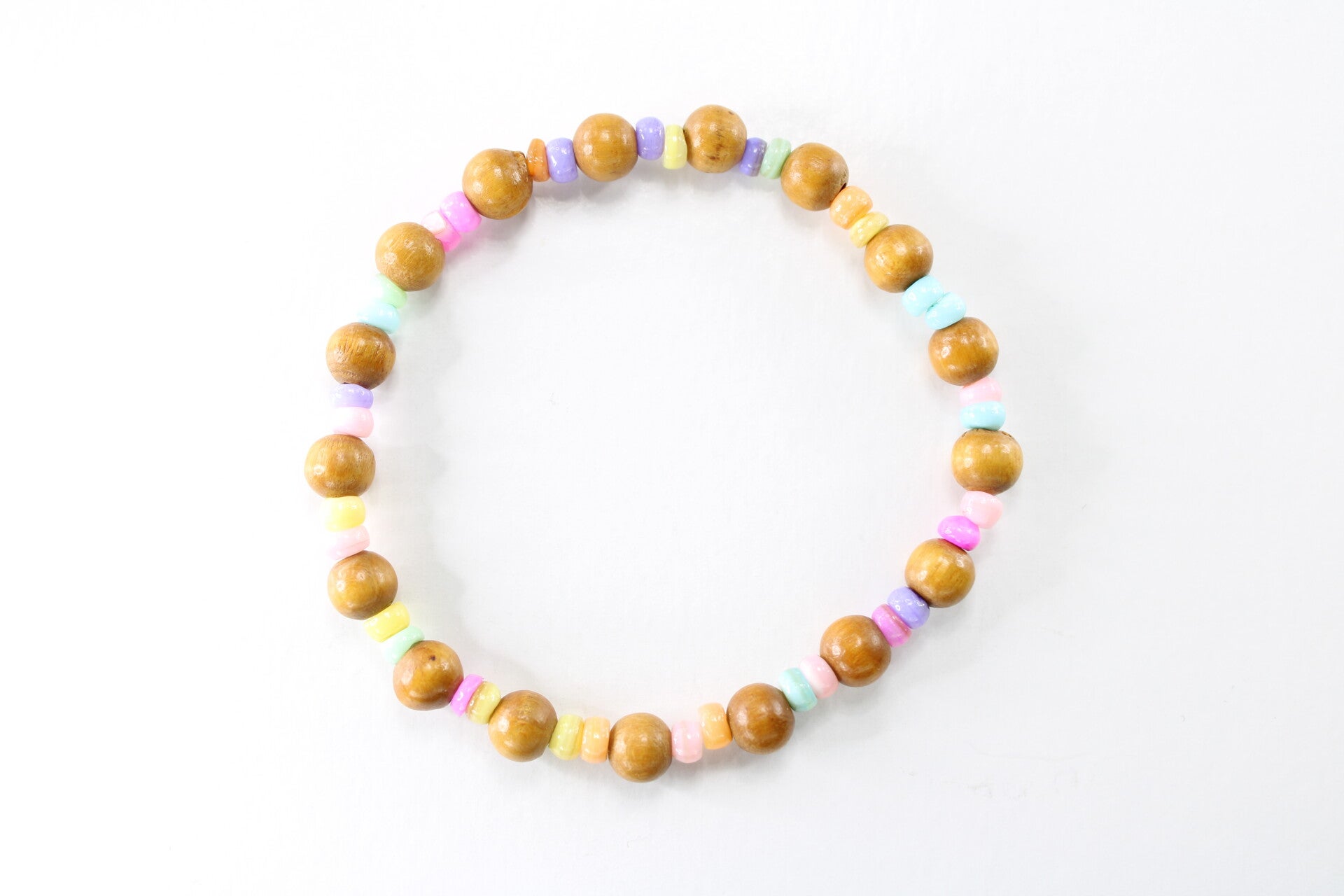 Dream - Houten Kralen Met Regenboogkleurige Natuurstenen - Armband