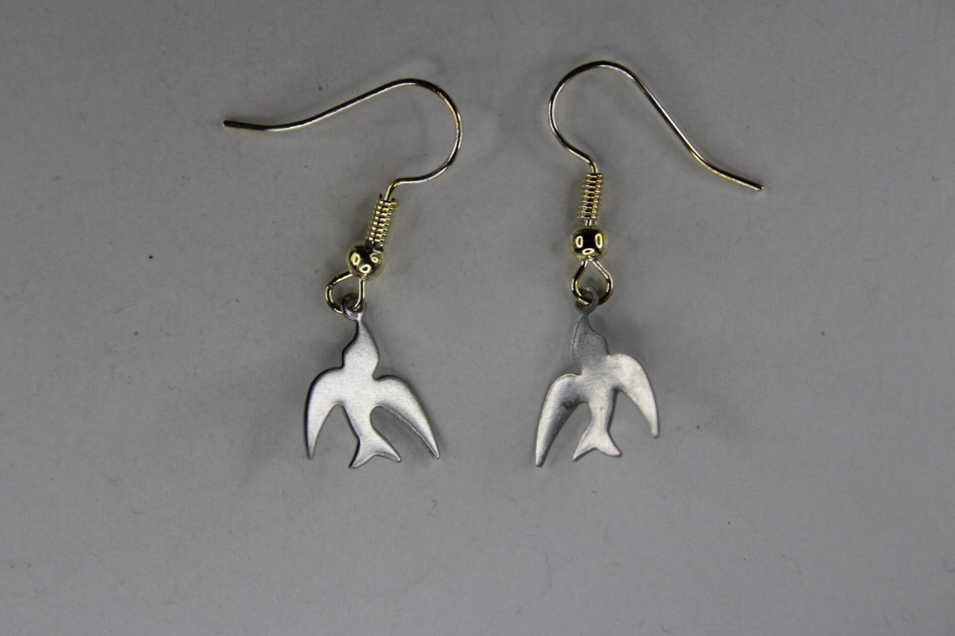 Mooie oorbellen met als hanger een silhouet van een zilverkleurige vogel