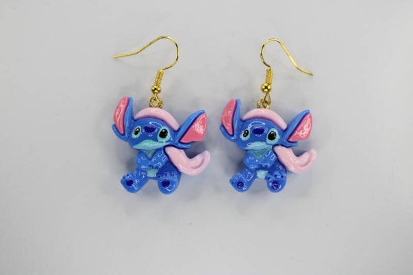 Grappige oorbellen met als hanger Stitch die zich heeft verkleed