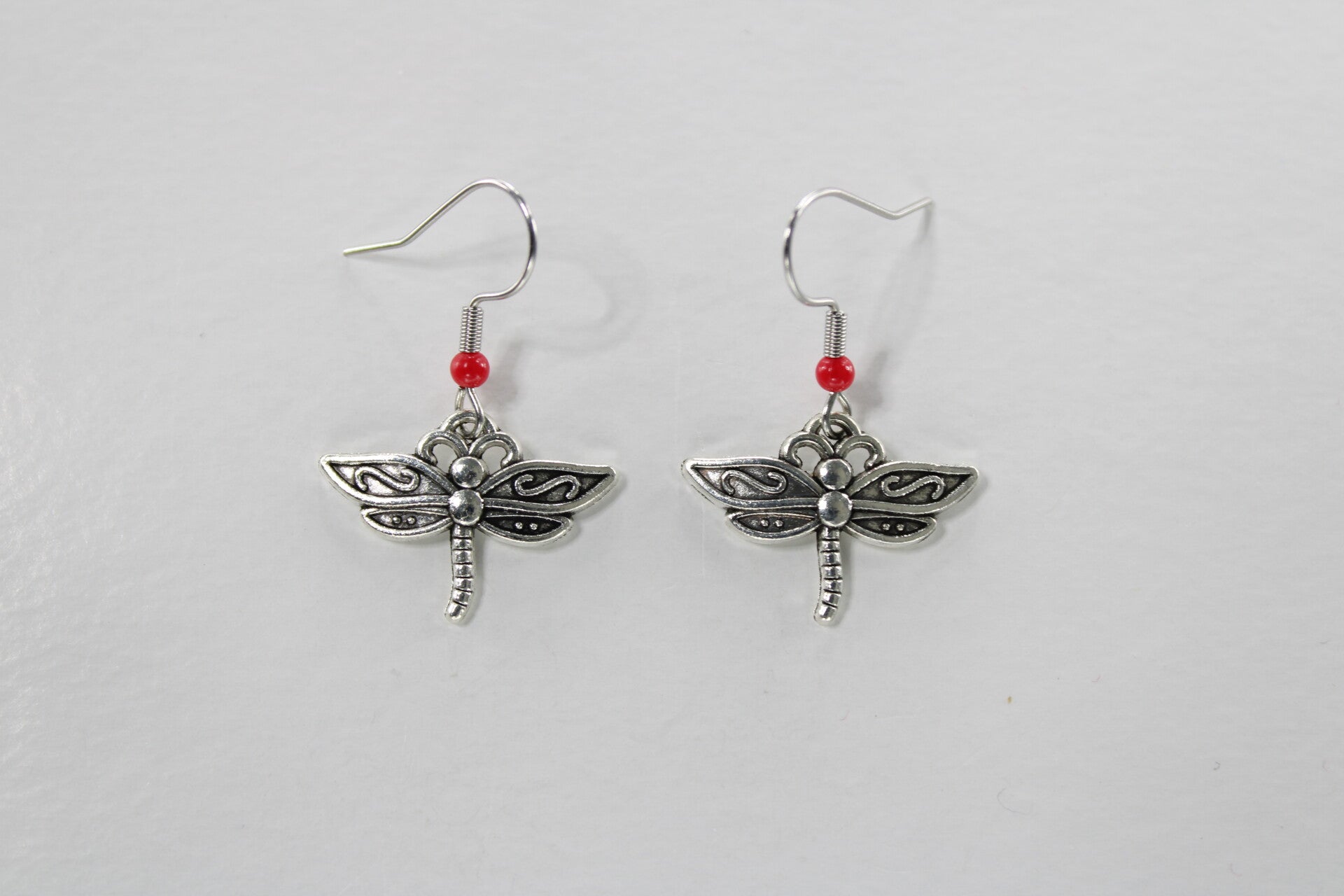 Mooie oorbellen met als hanger een libelle met verchillende gekleurde kraaltjes verkrijgbaar