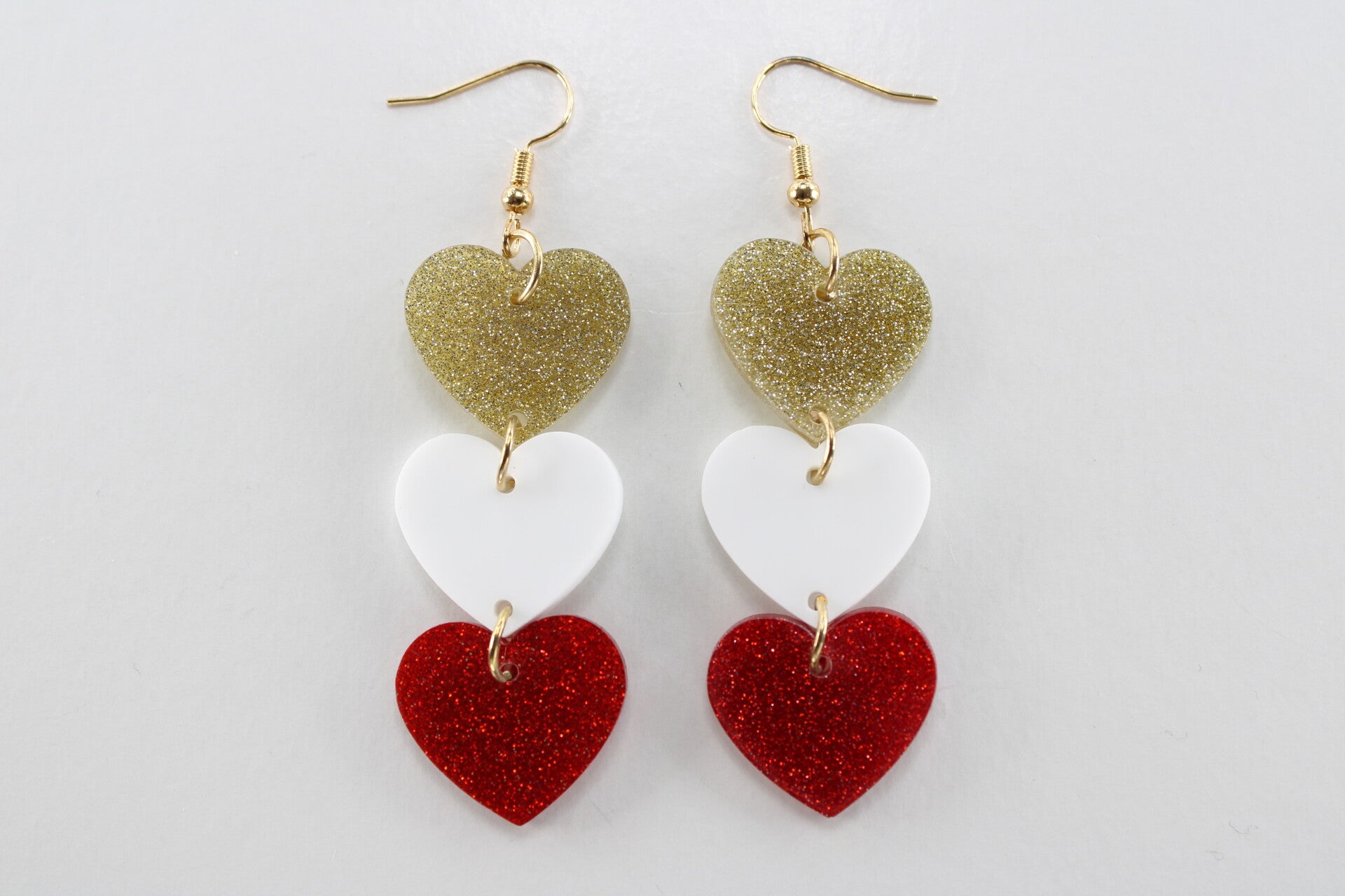 Mooie oorbellen met als hanger drie blauwe hartjes