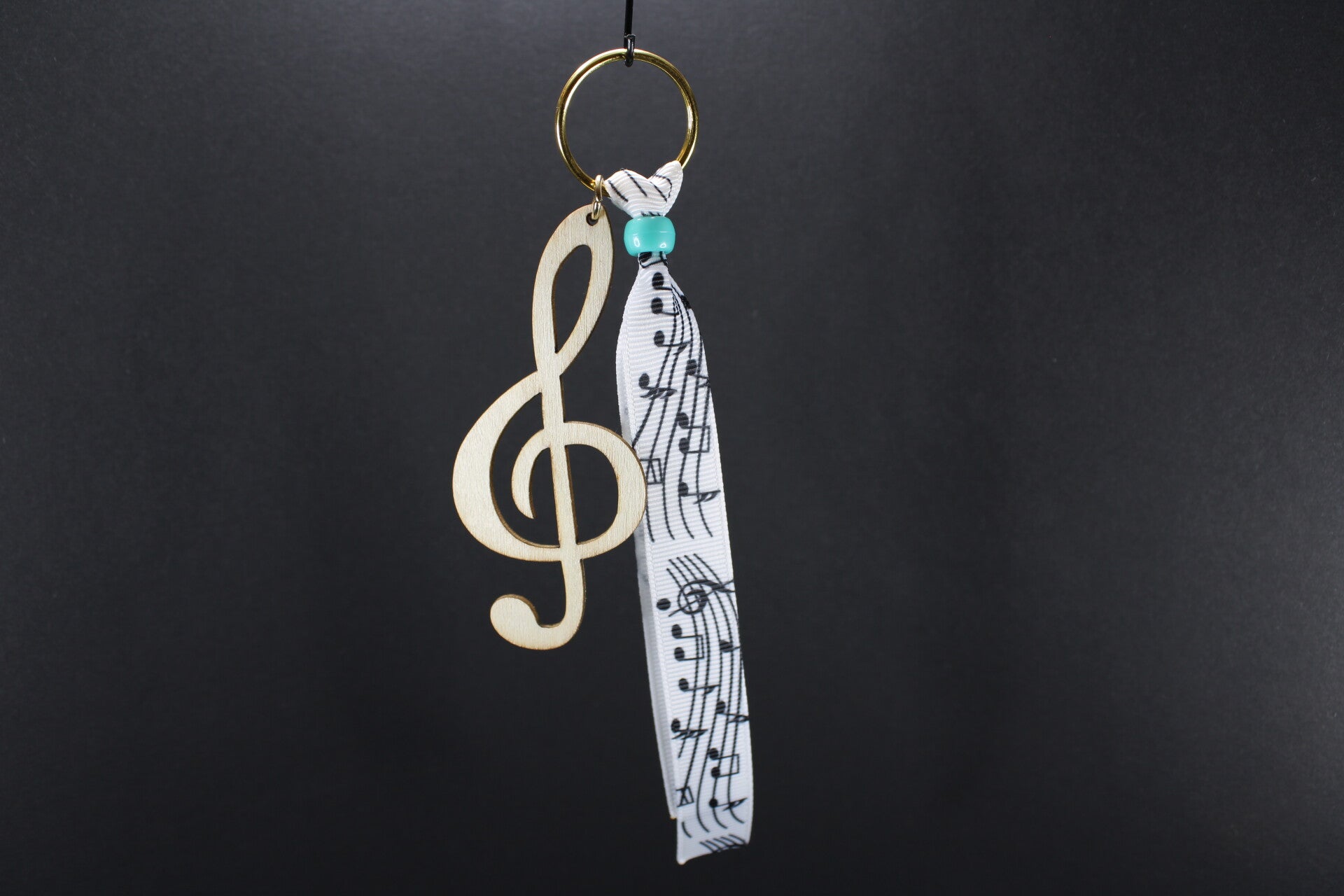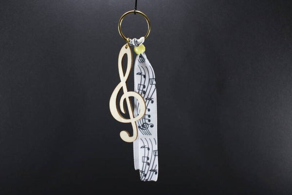 Viool- of G- sleutel met muzieklint in verschillend motief met een mooie gekleurde kraal.