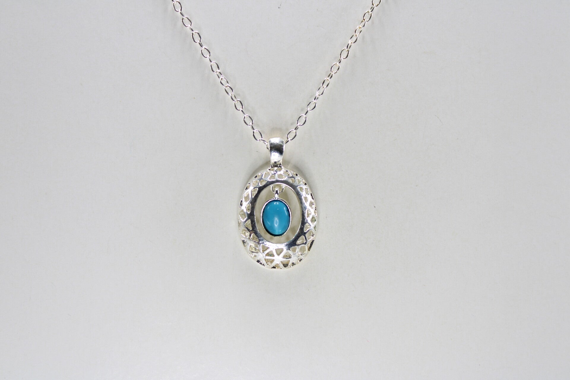 Mooie vormgegeven broche met een hemelsblauw steentje aan ketting met sluiting in een vintage look.