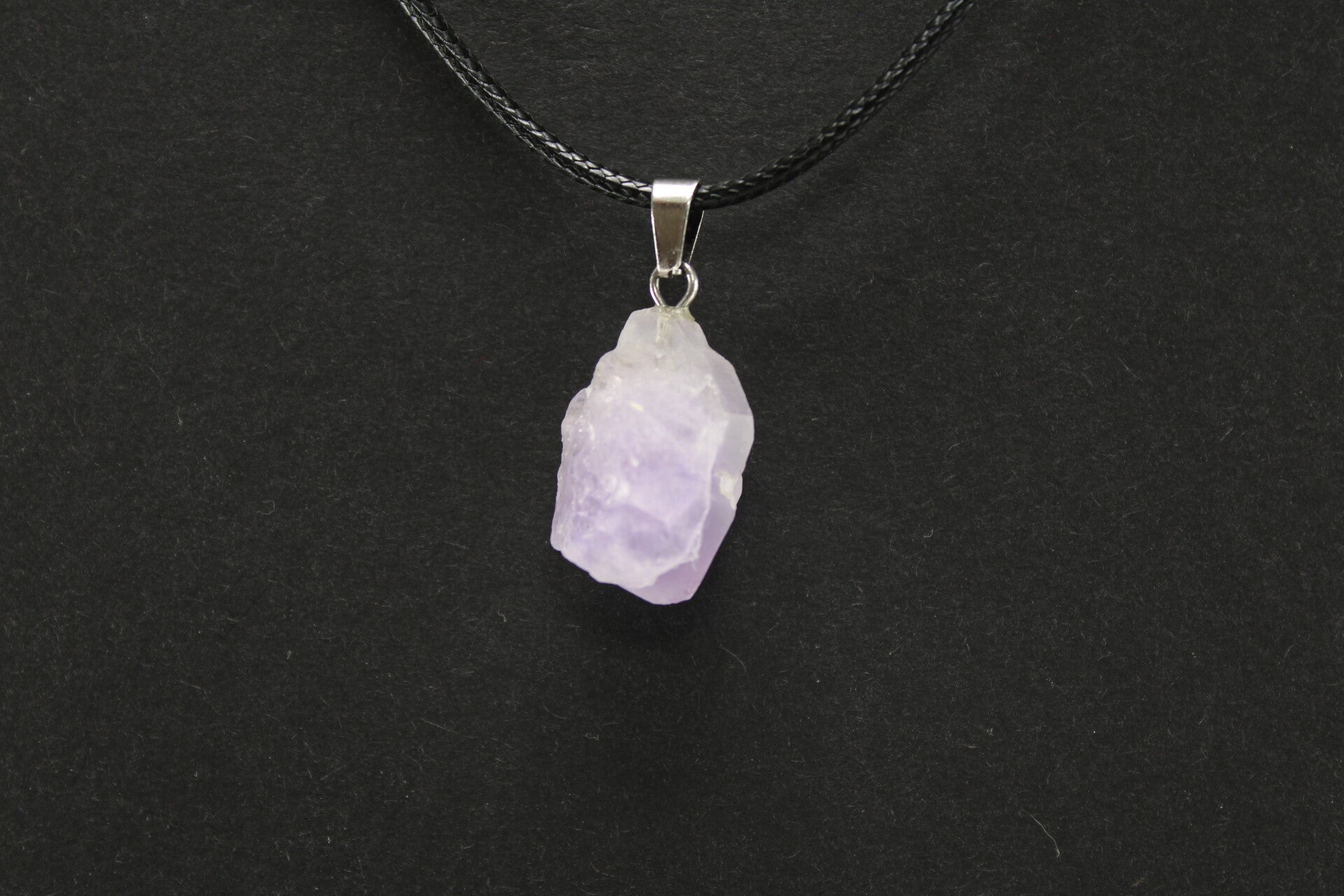Halsketting met ruw vormgegeven natuurstenen hanger hangend aan koord met sluiting