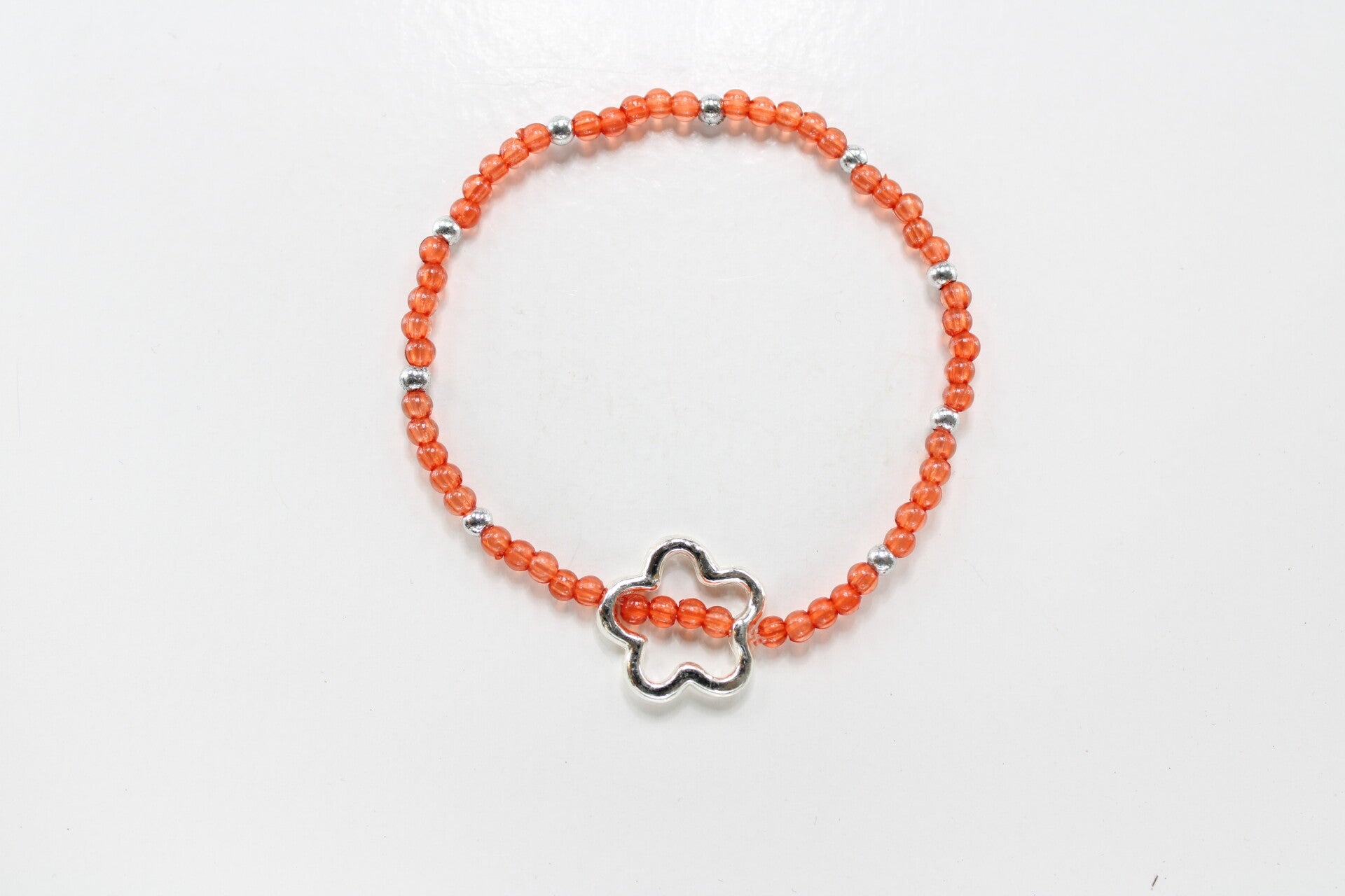 Elegante oranje met zilveren kralenarmband met een mooi detail van een open bloem