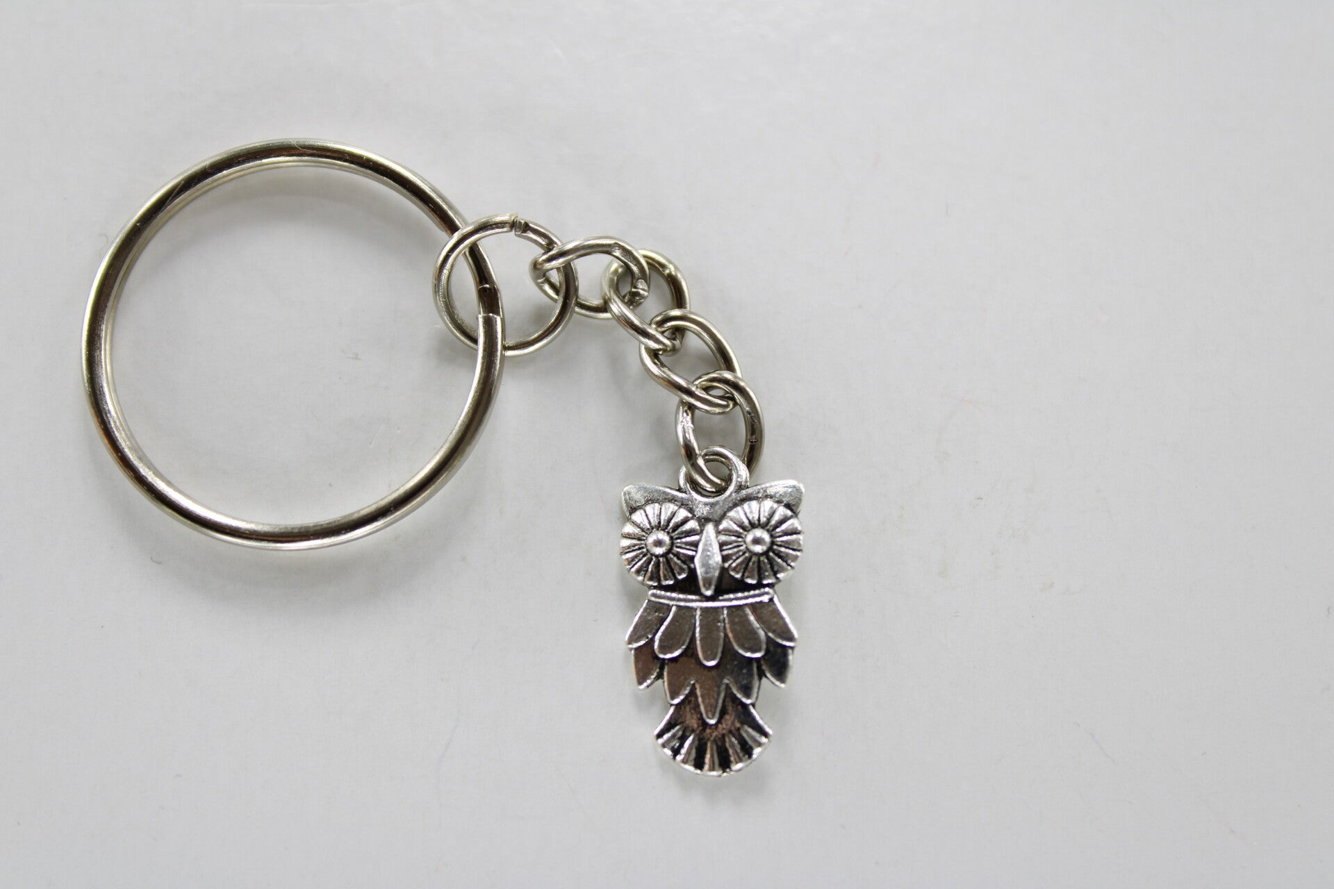 Zilverkleurig uil met een vintage look, staan voor wijsheid