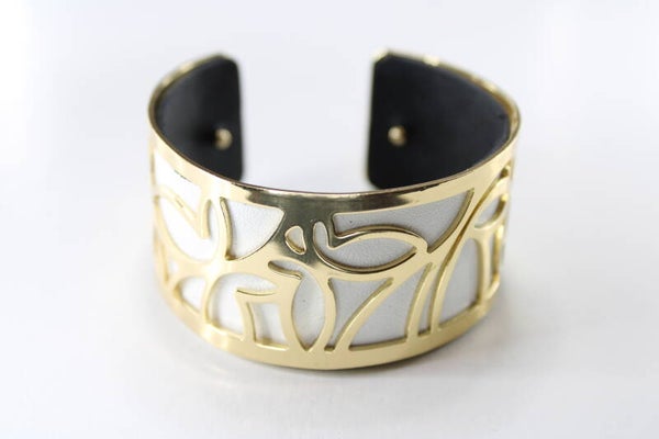 Een manchetarmband met een open patroon met een voering