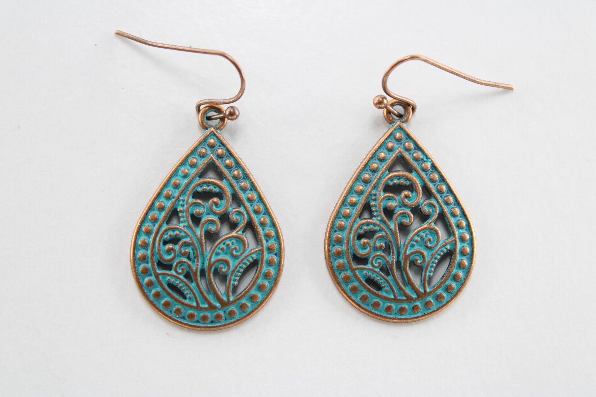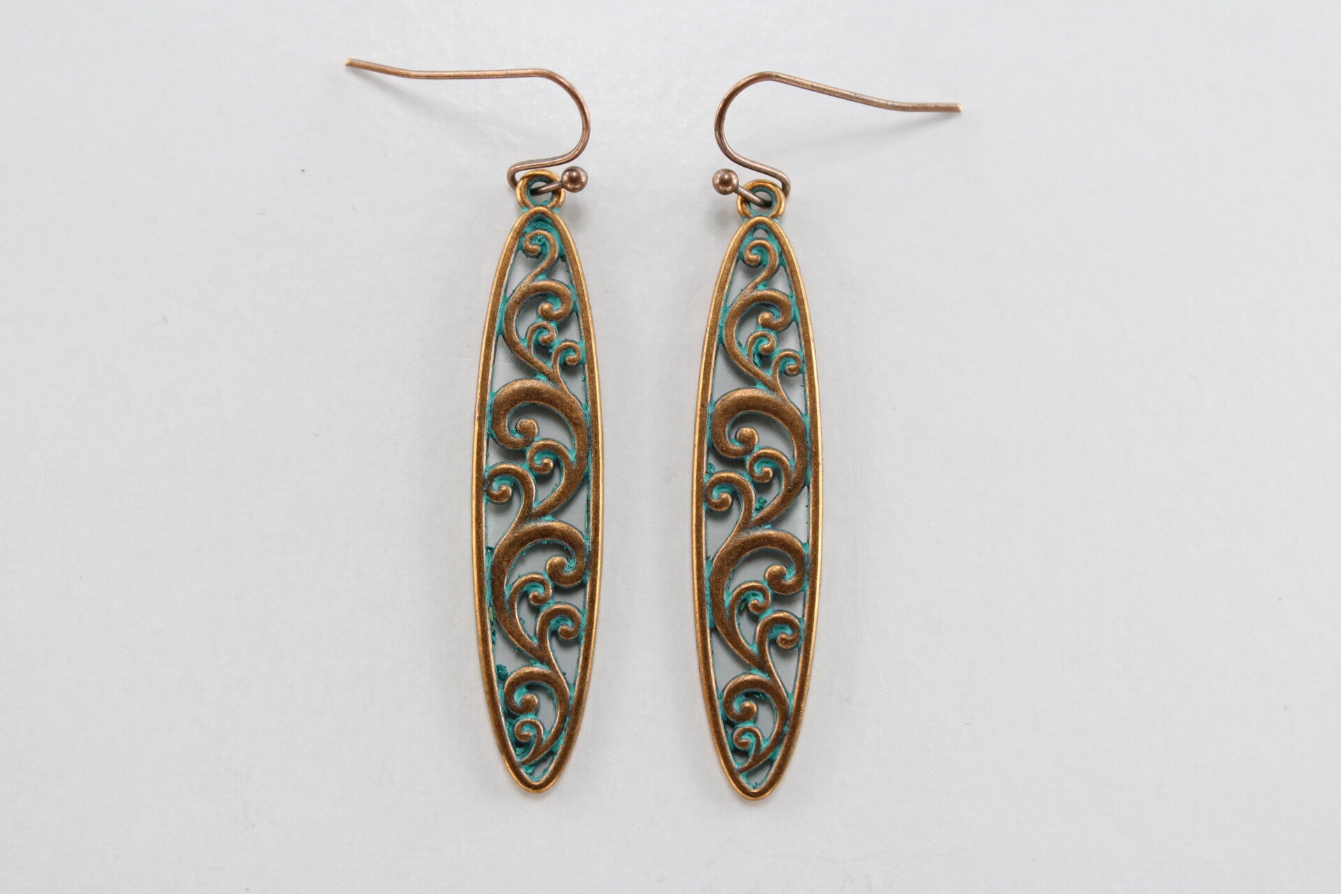 Deze oorbellen hebben een vintage/gypsy stijl, en hebben een antieke koperkleurige afwerking