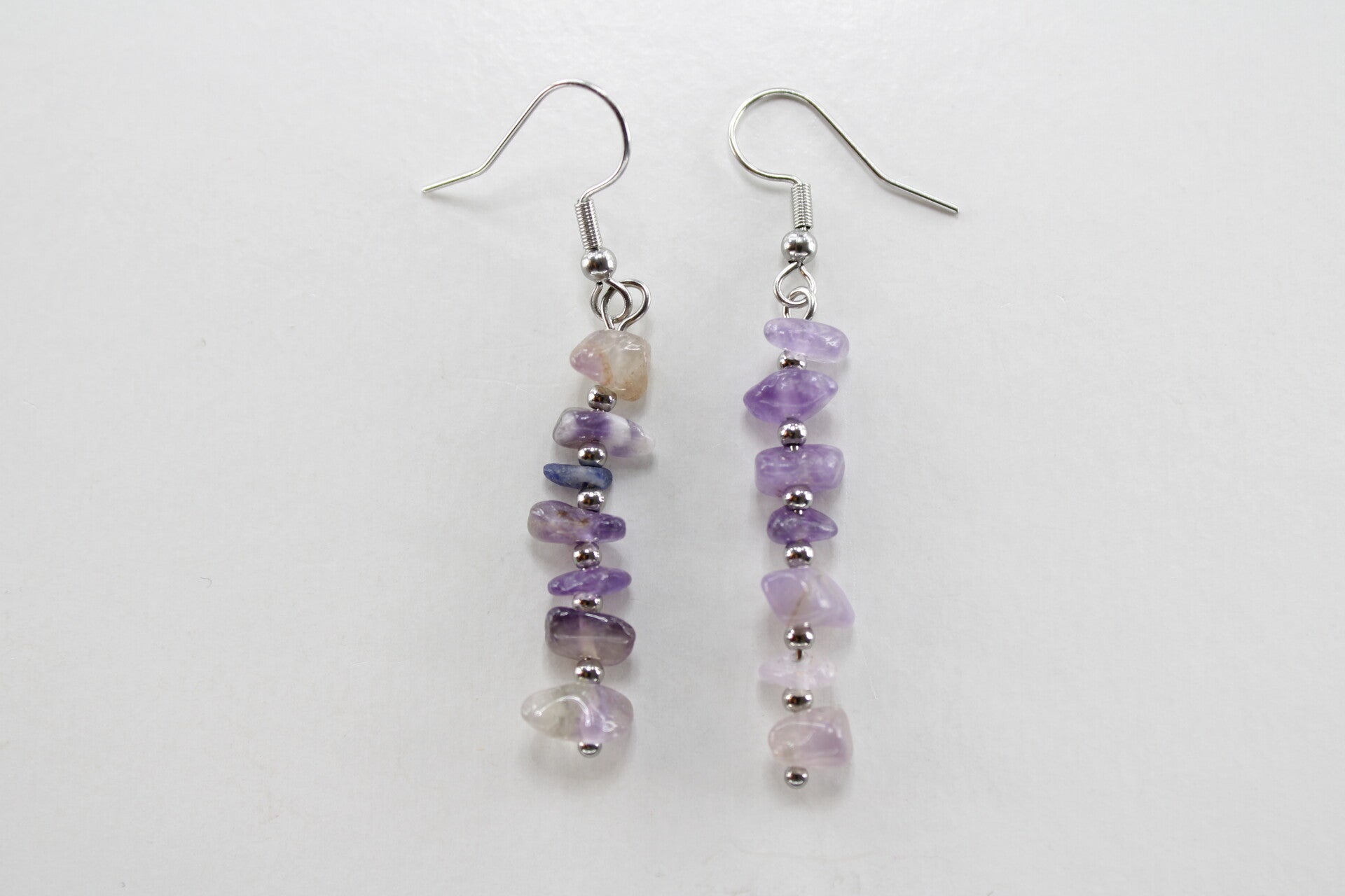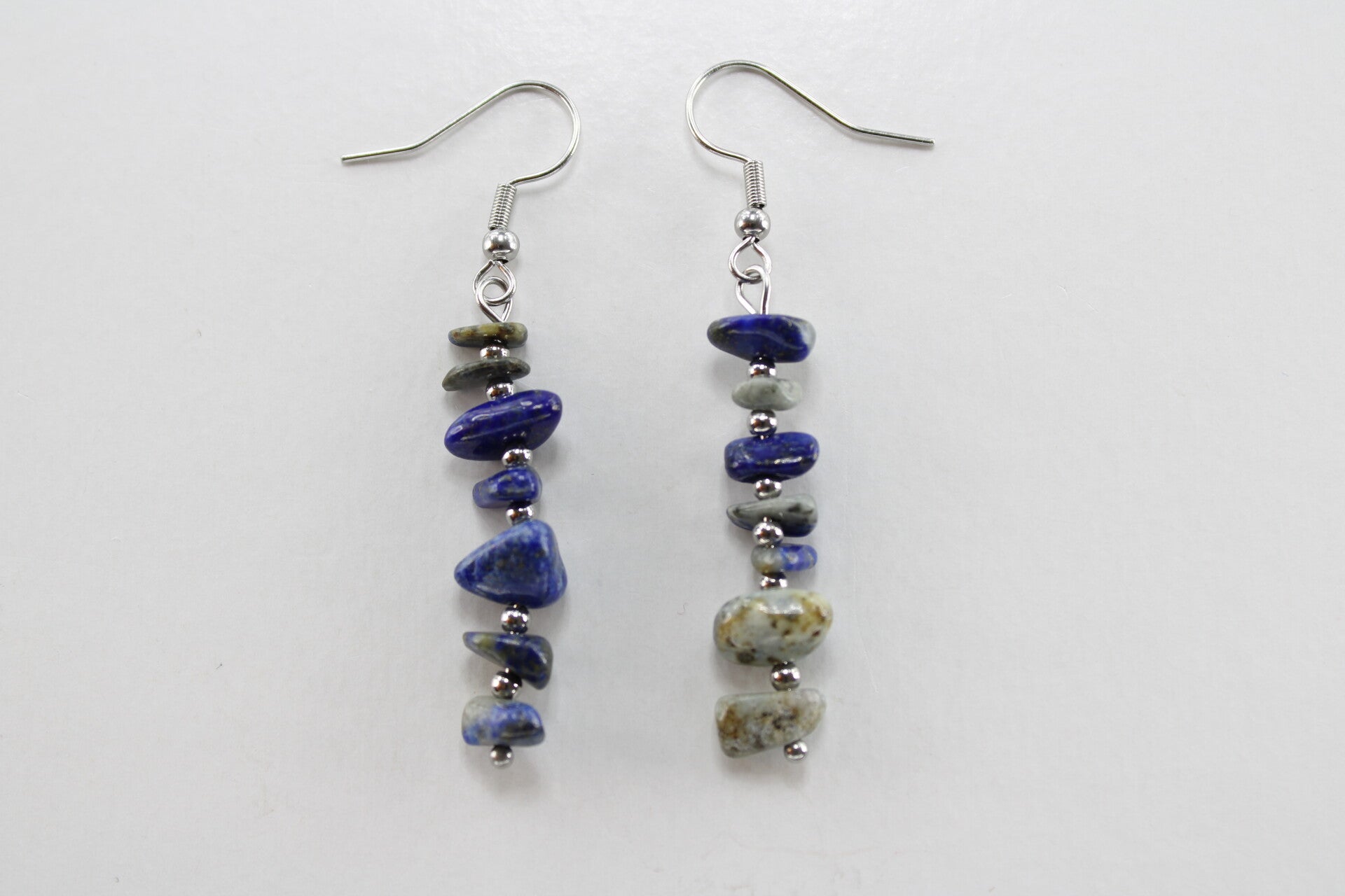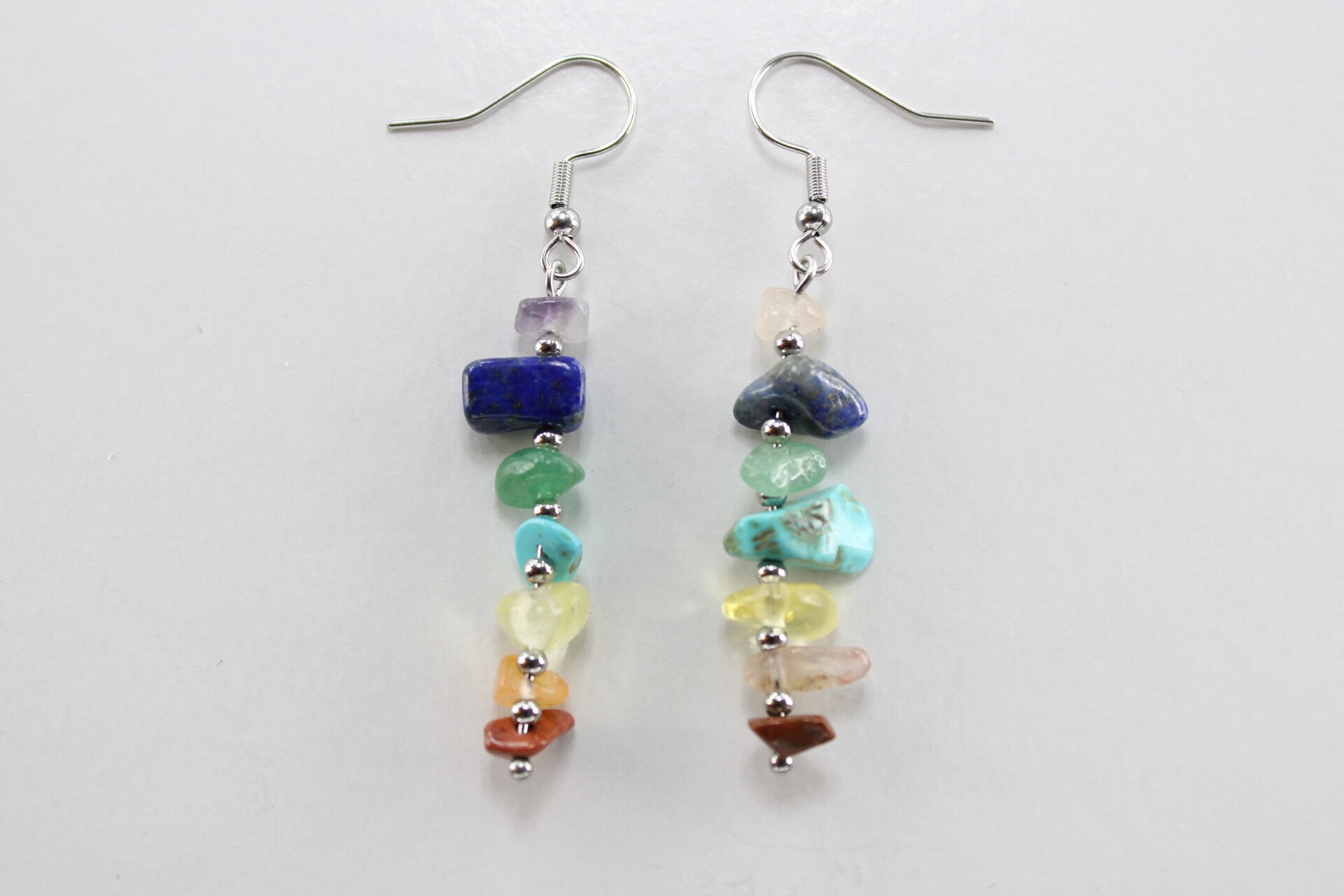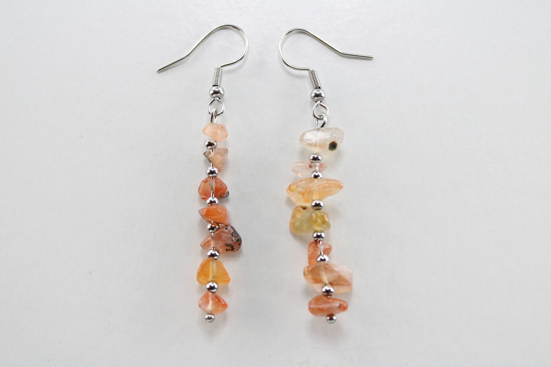 Natuurstenen oorbellen bestaande uit verschillende steentjes gescheiden door een kraal