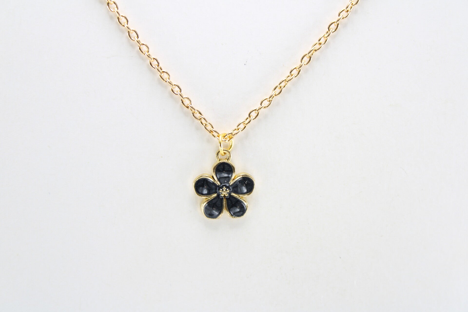 Een mooie bloem aan goudkleurige schakelketting met sluiting