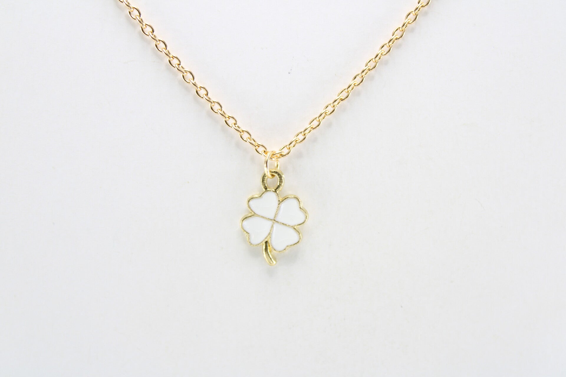 Klavertje vier aan goudkleurige schakelketting met sluiting