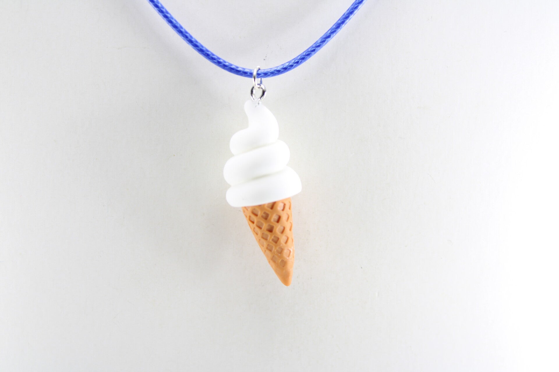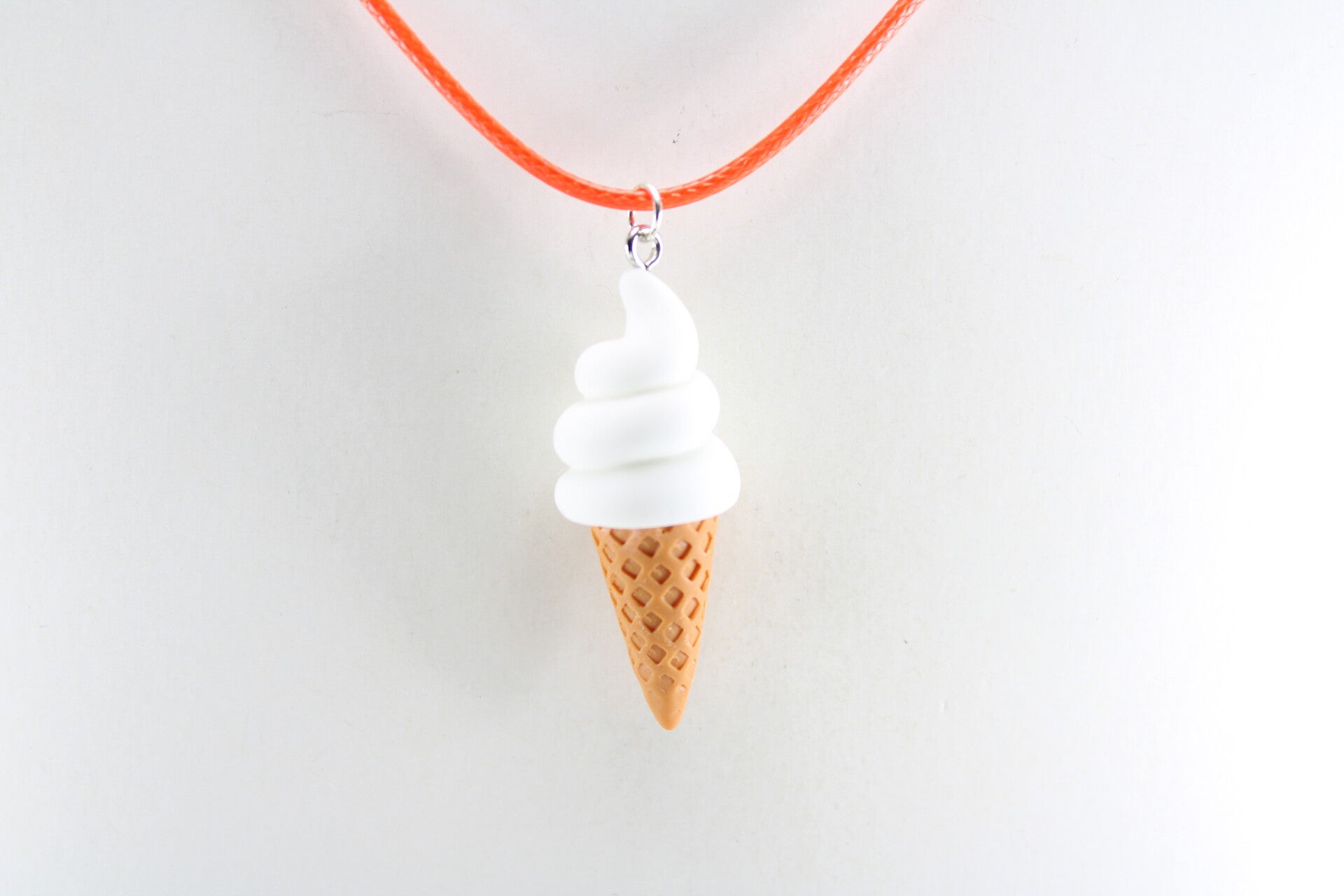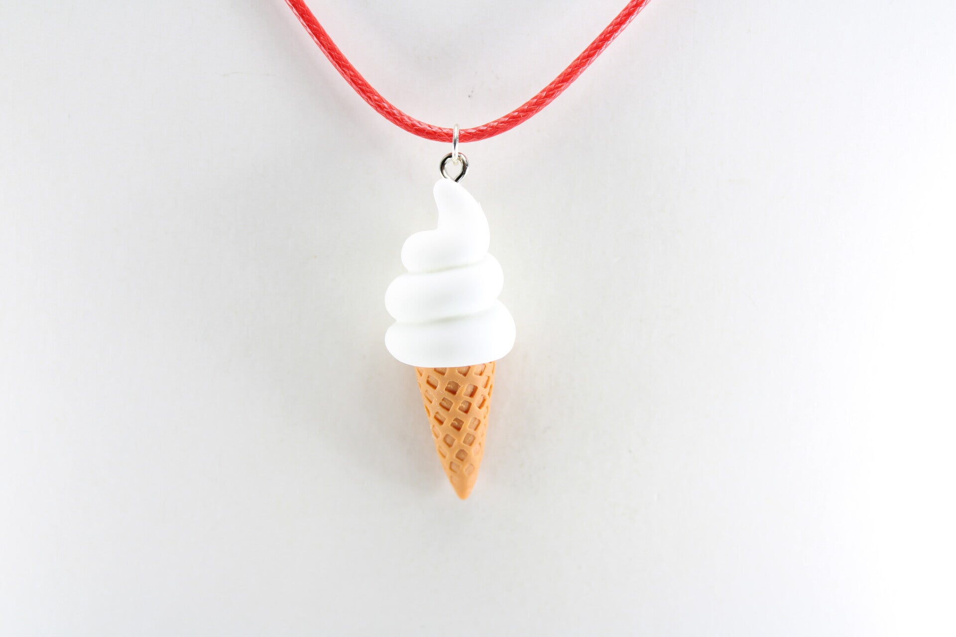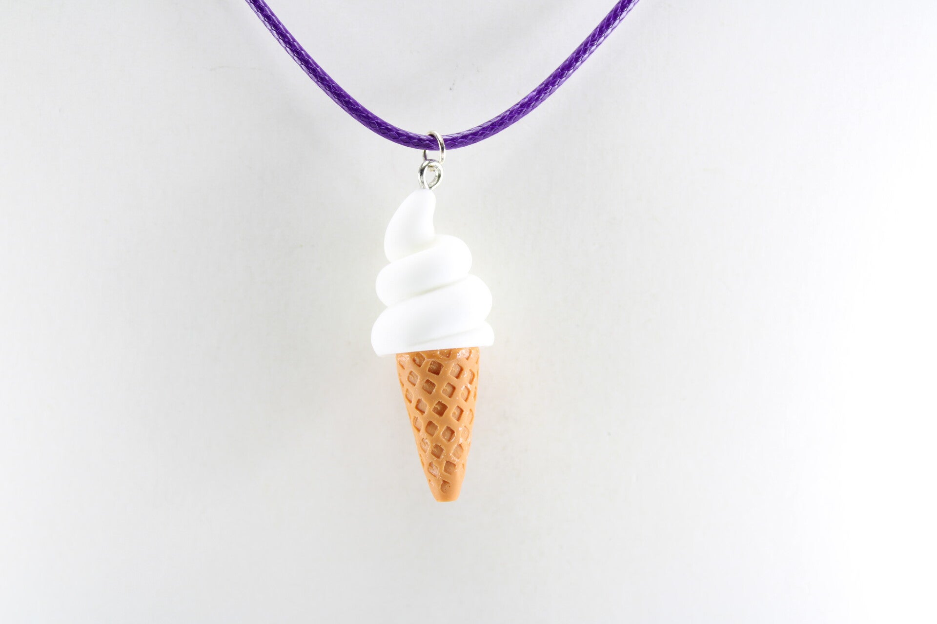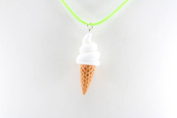 Een soft ijs in een wafelhoorn, compleet met realistische details, hangend een een gekleurd koord met sluiting