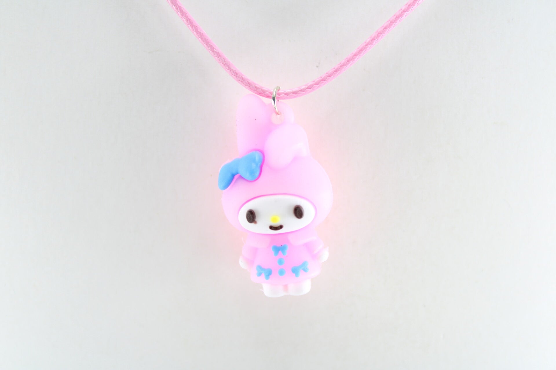 Bekende karakters van sanrio hangend aan een gekleurd koord met sluiting