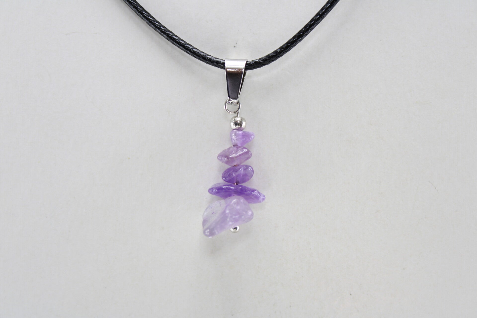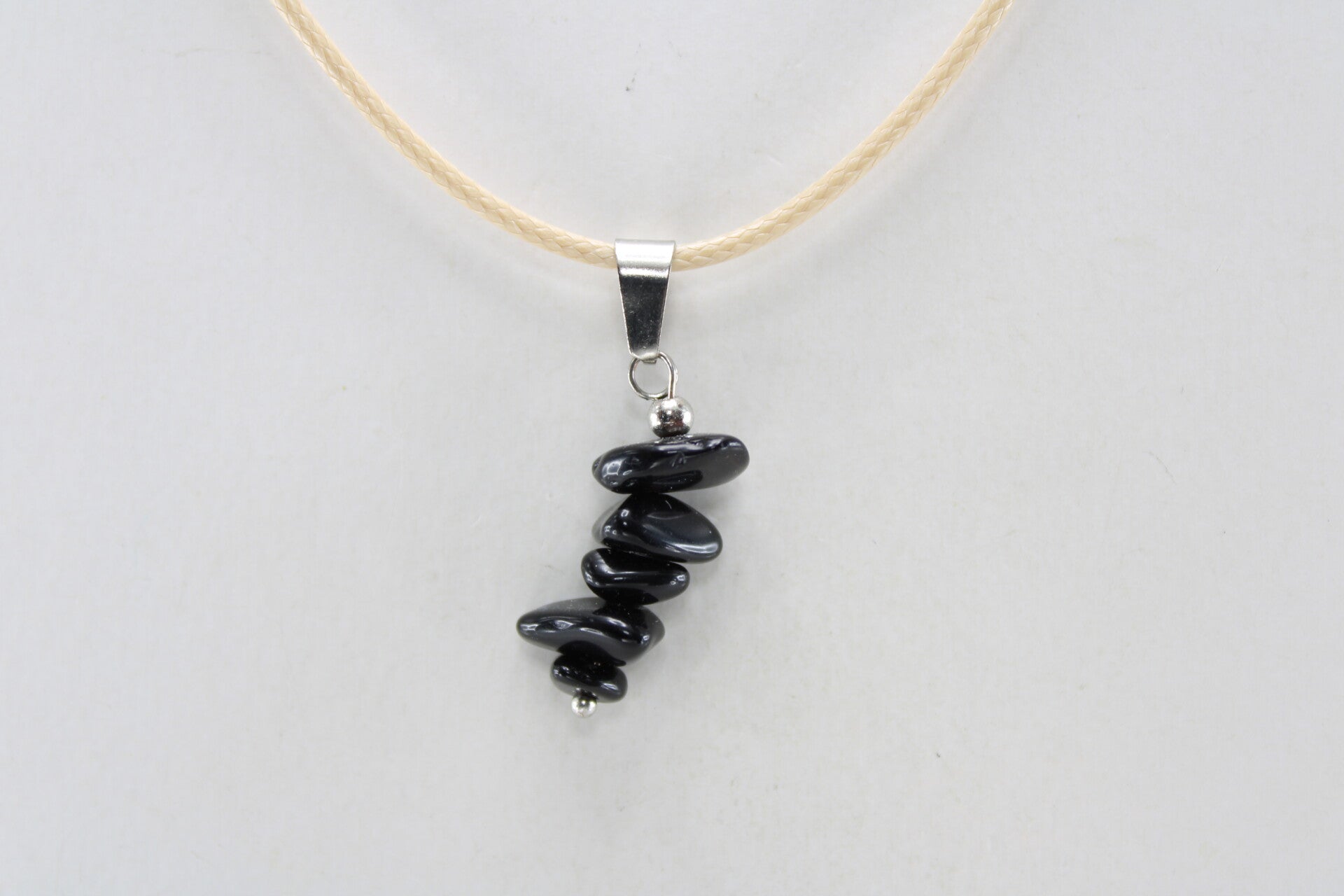 Halsketting met gestapelde vormgegeven natuurstenen hanger hangend aan koord met sluiting